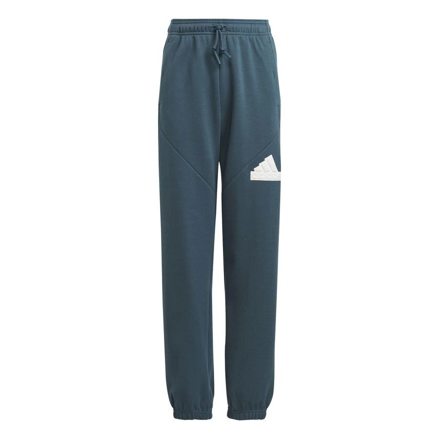 Nothing beats a pair of comfy sweatpants. These junior size adidas logo pants feature a raised adidas Badge of Sport print on the front. Made from a double-knit cotton blend, they have a loose fit that rests gently against tired muscles. Elastic posts stop so your favorite sneaks can still be seen. At least 70% of this product is a mix of recycled and renewable materials.