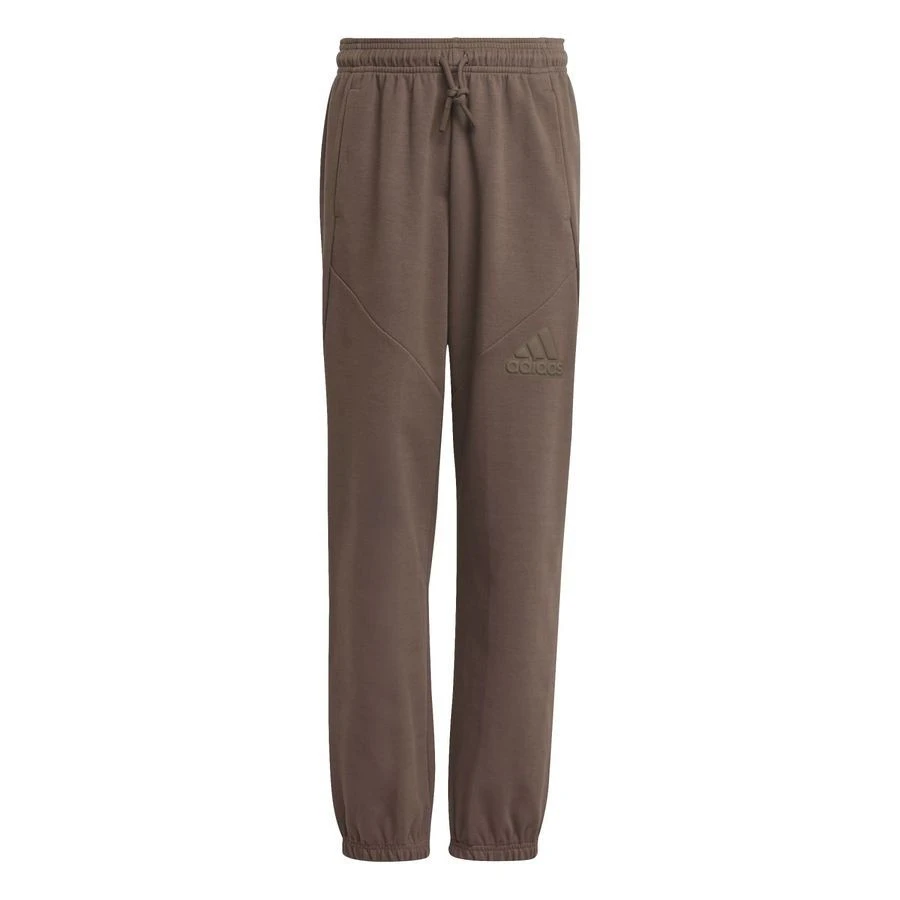 Nothing beats a pair of comfy sweatpants. These junior size adidas logo pants feature a raised adidas Badge of Sport print on the front. Made from a double-knit cotton blend, they have a loose fit that rests gently against tired muscles. Elastic posts stop so your favorite sneaks can still be seen. At least 70% of this product is a mix of recycled and renewable materials.