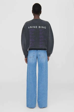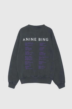 The Ramona Sweatshirt Stardust features an ethereal speckled graphic screen printed on the front with ANINE BING retail locations listed across the back. It’s made from 100% organic cotton French terry washed down to a faded black colourway for an authentic vintage look.