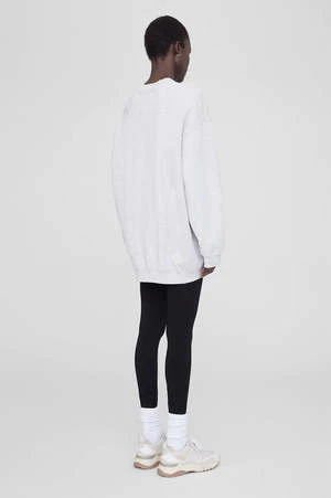 The Tyler Sweatshirt from ANINE BING Sport is an oversized crewneck pullover made from 100% organic cotton in heather grey. Screen-printed collegiate lettering in contrast black at the centre chest adds to its vintage-inspired look. This style is finished with distressing along the ribbed trim at the collar, cuffs, and hem.