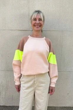 The Fellie Sweatshirt by Bellerose is a vibrant rendition of this style with contrasting color-block inlays for a dynamic and modern outcome. It is crafted from a light cotton blend with wide raglan sleeves and ribbed edges. The ideal sweatshirt to go from the office to your evening yoga class.