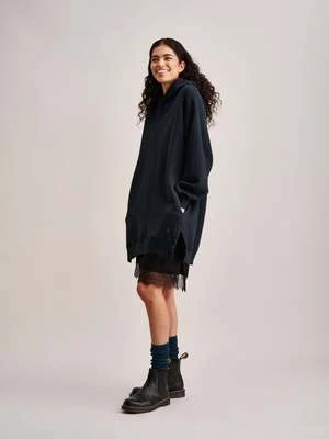 The Flinn is an oversized sweatshirt dress with deep side slits, a large hood, and a thigh-grazing high-low hemline, perfect for transitional days. It is crafted in fade-out cotton fleece and accented with Bellerose’s signature BB logo on the lower left side. Wear it with contrasting leggings and a pair of light sneakers on an off-duty day.