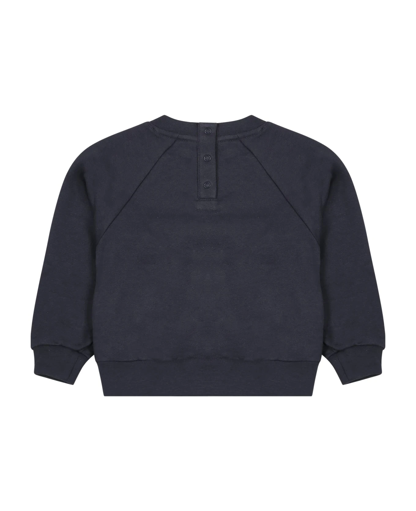 Blue sweatshirt in fleece cotton, long sleeves, with crew neck and snap button closure on the back. It is embellished with “I have a story to tell” writing on the front.