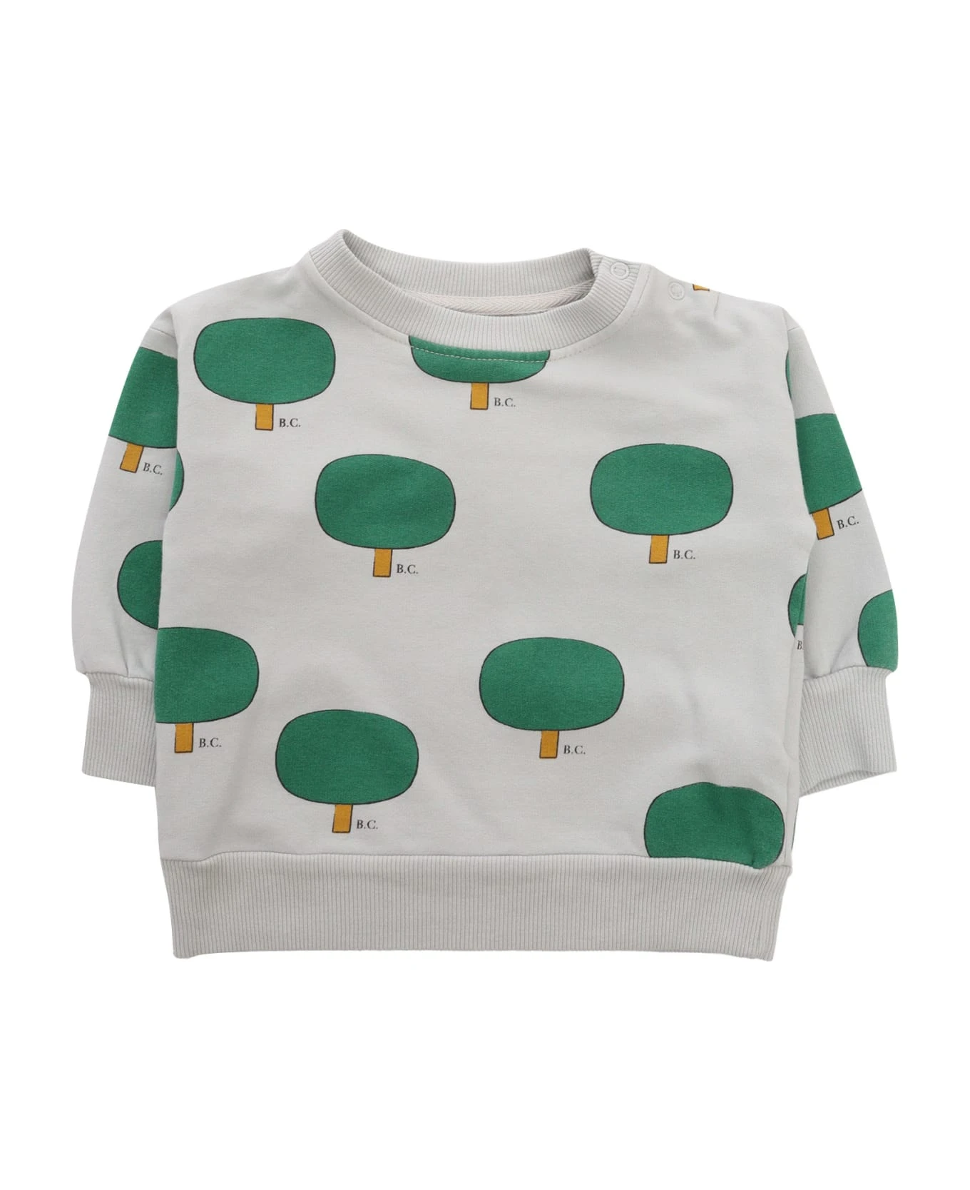 Sweatshirt in stretch organic cotton, crew neck, ribbed edges, snap button closure on the shoulder