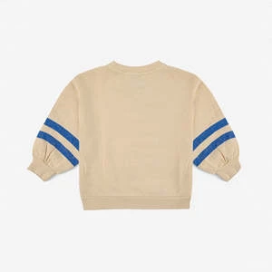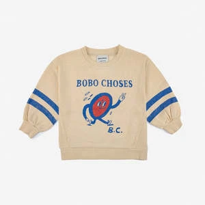 New from Bobo Choses for Autumn / Winter 2022. Athletic inspired sweatshirt with blue double stripes on the sleeves and silly racing clock illustration on front.