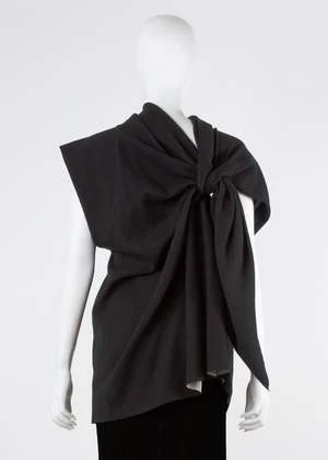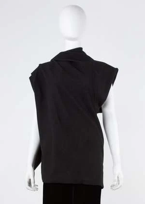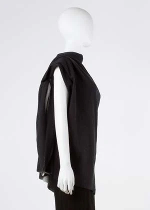 Asymmetrical dress with adjustable drape back detail. Cotton double knit with a black mesh over a solid white jersey. Raw finish at neck. Unisex.