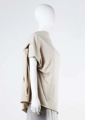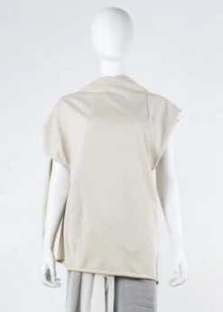 Asymmetrical dress with adjustable drape back detail. Cotton double knit with a black mesh over a solid white jersey. Raw finish at neck. Unisex.