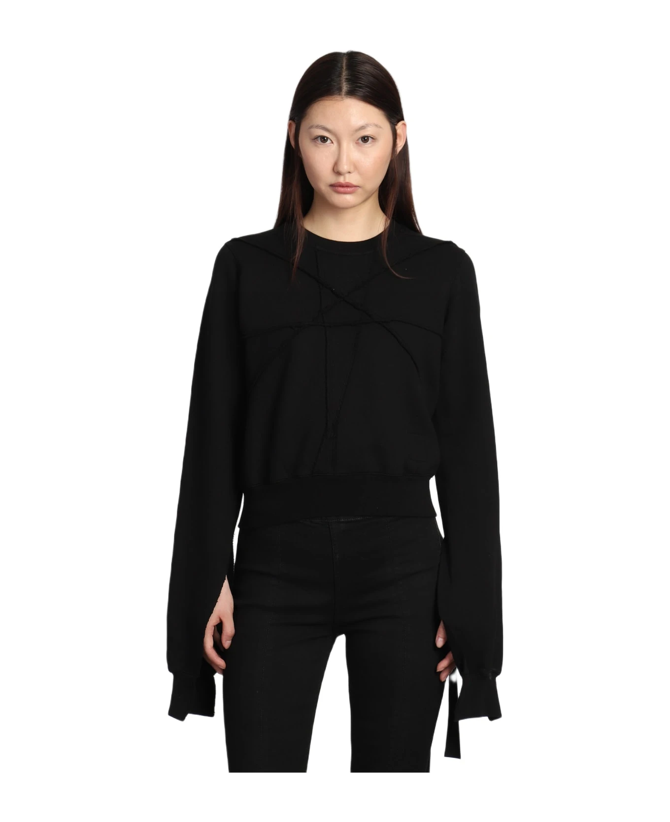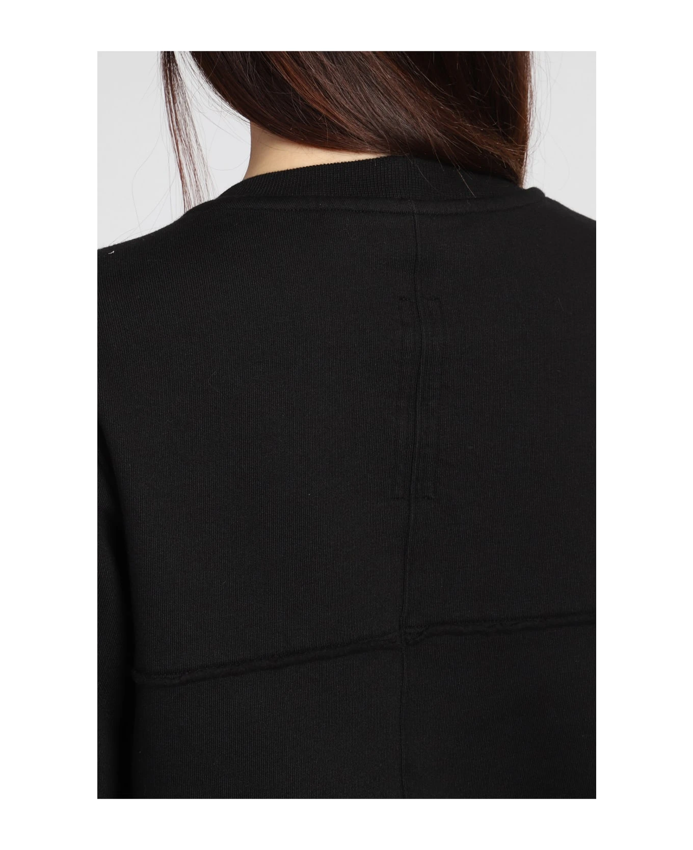 Cropped sweat Sweatshirt in black cotton, round neck, long sleeves, cut out detail, 100% cotton, Made in Italy, Model is 180 cm and wear a size S