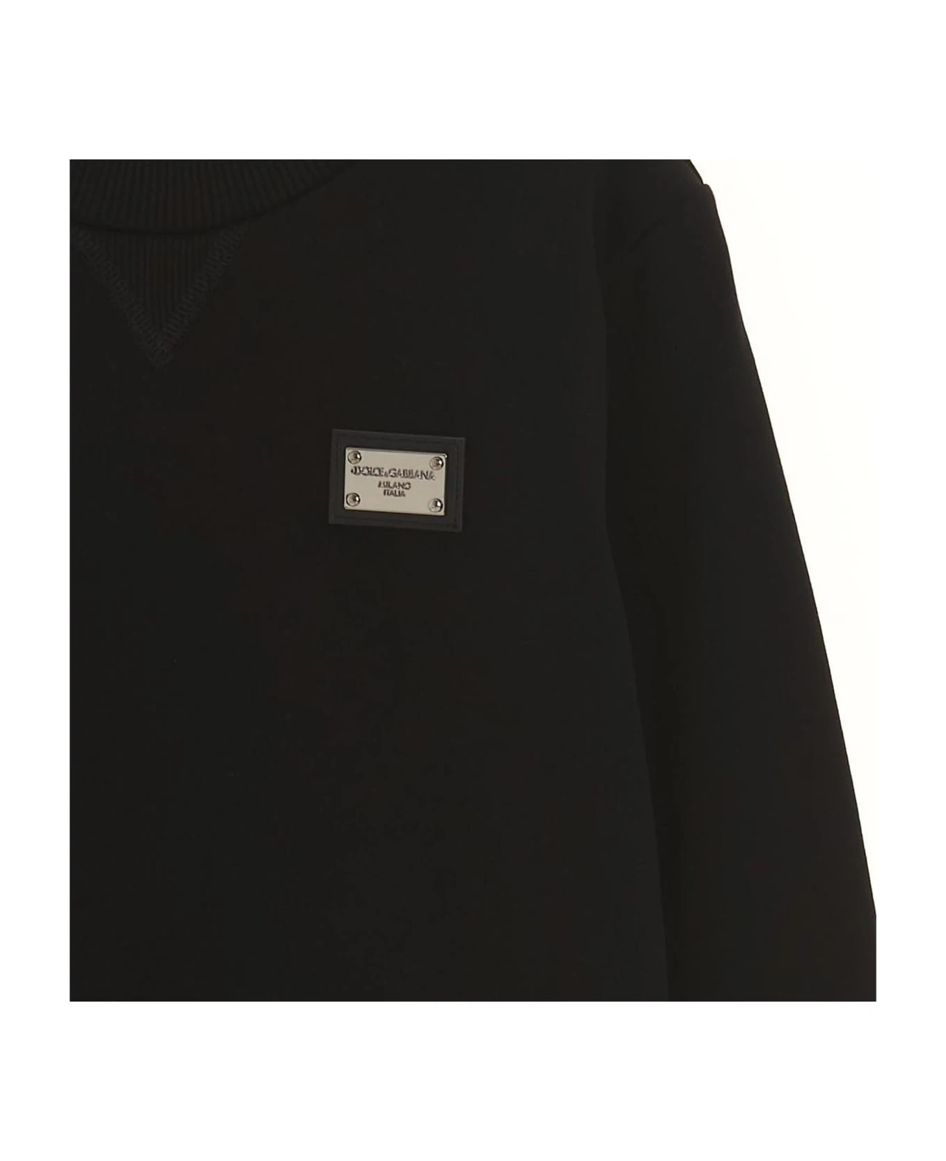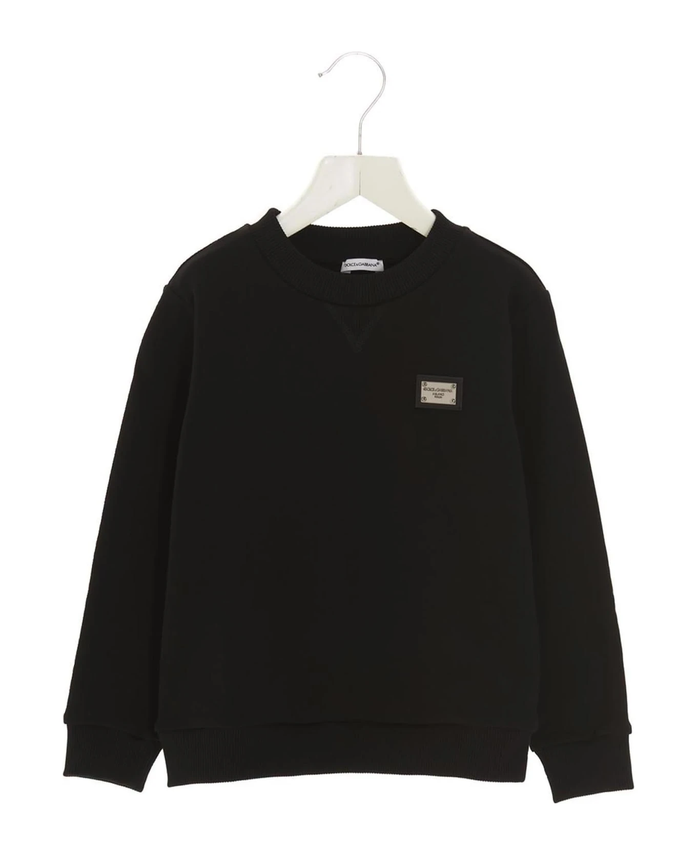 Essential’ cotton, crewneck sweatshirt with front logo plaque, and long cuffed sleeves.