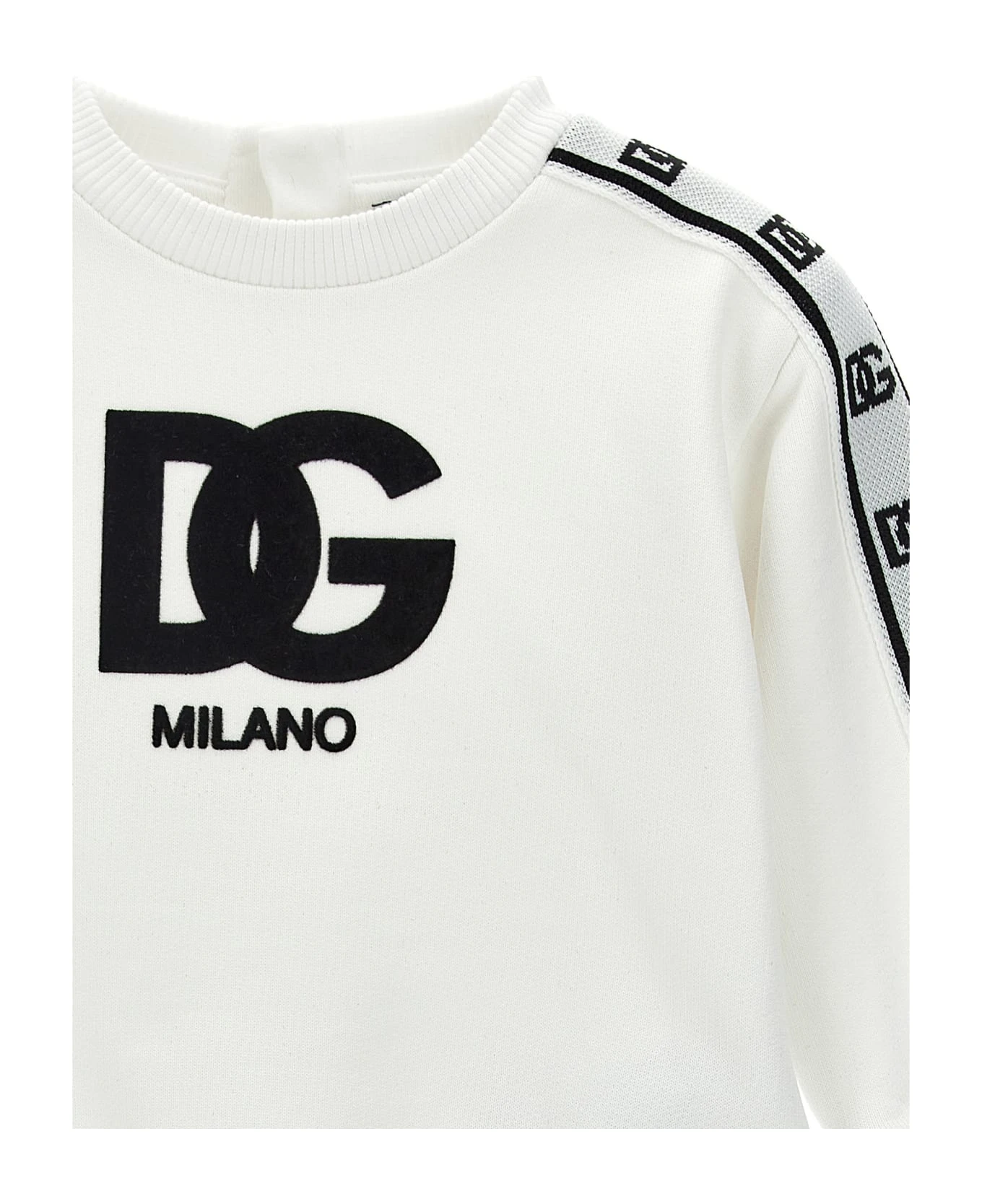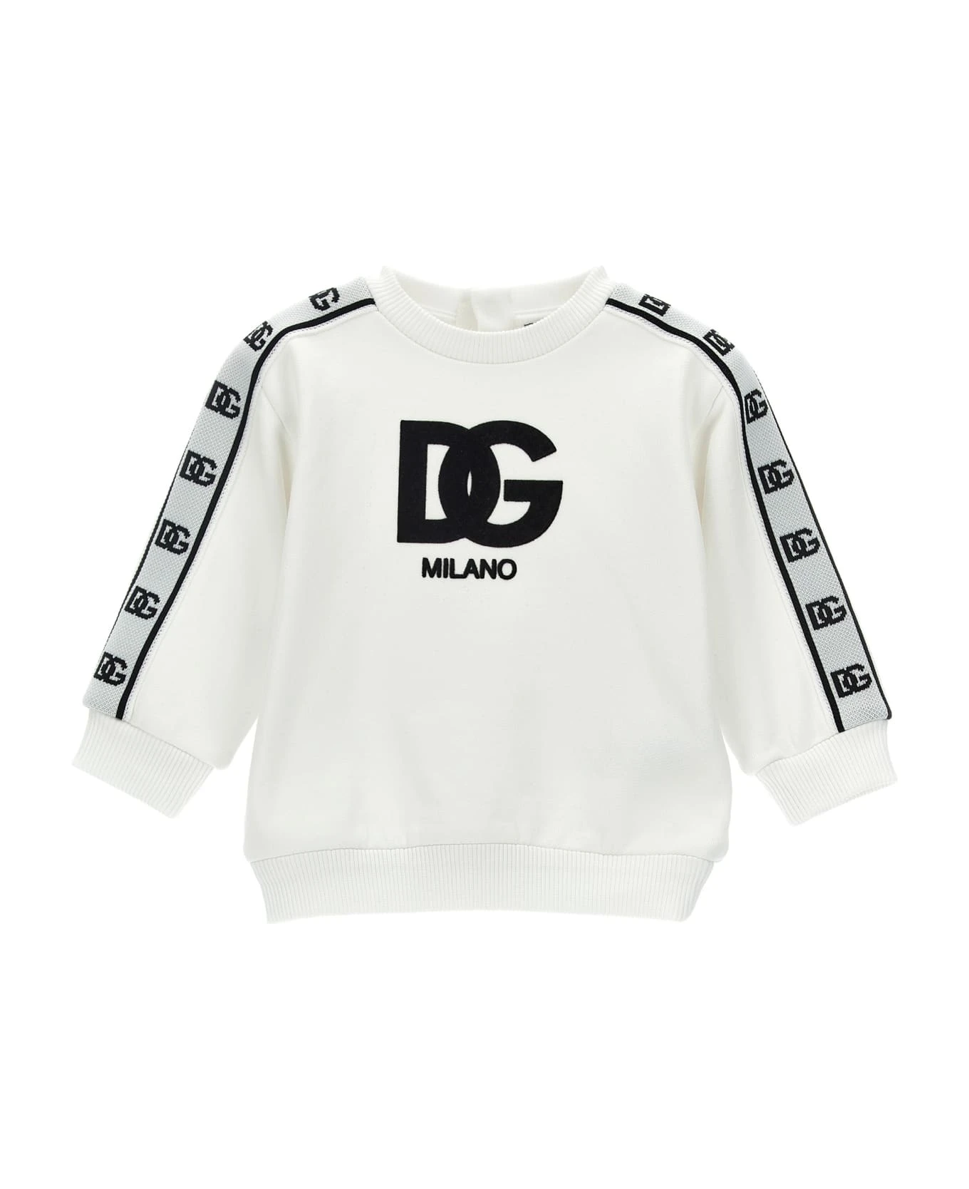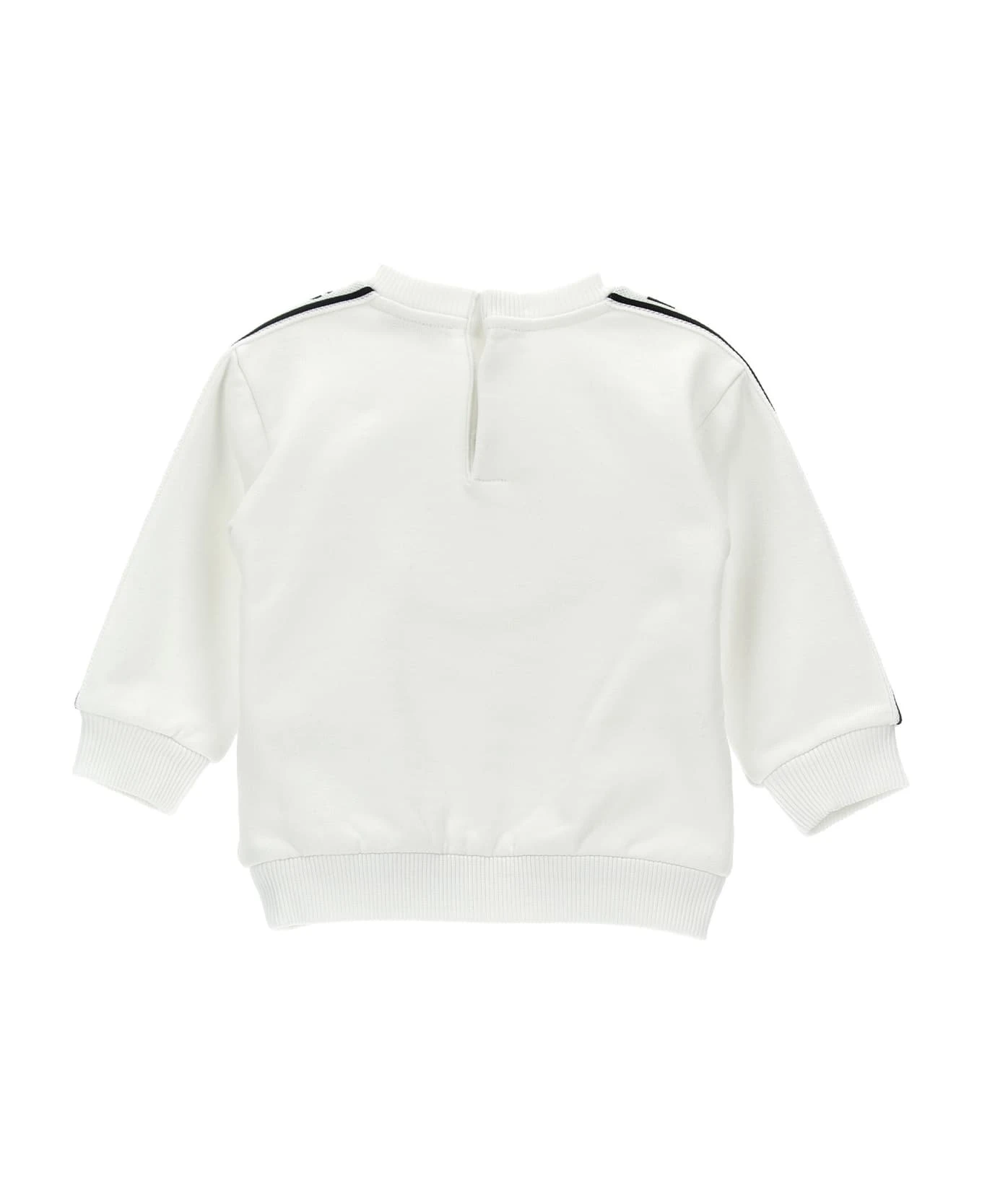 Cotton sweatshirt with front flocked logo, logo bands on the sleeves, crewneck, long cuffed sleeves.