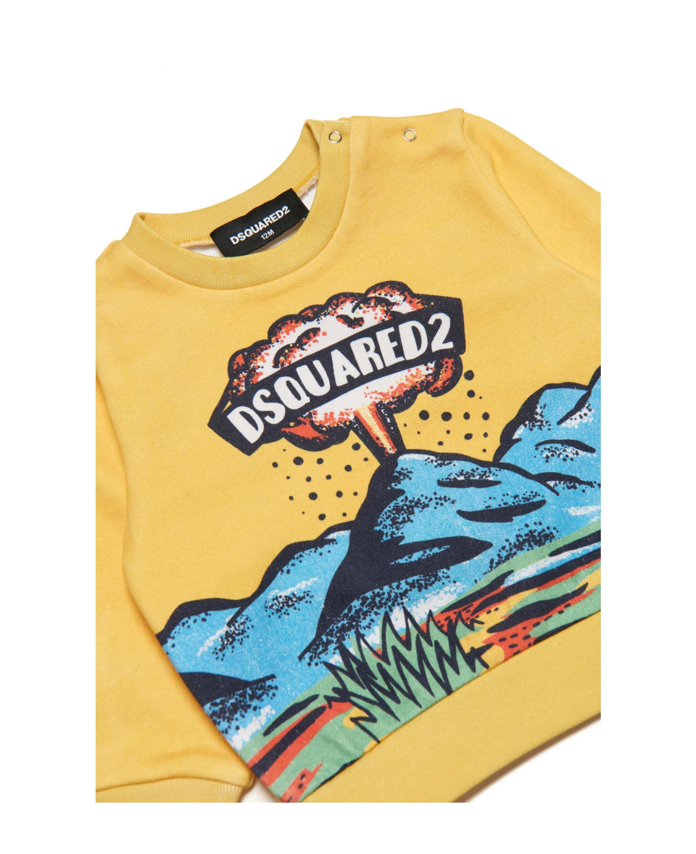 Crew-neck, long-sleeved, cotton sweatshirt with elastic bottom hem and cuffs. It features a convenient snap-button opening at the shoulder and a colorful Volcano graphic with logo on the front. An original and characterful garment for everyday life.