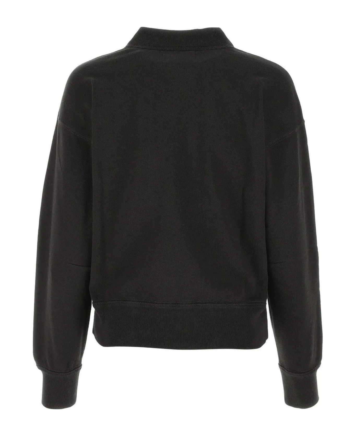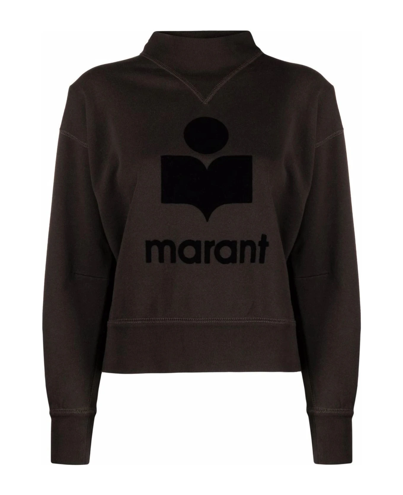 Faded black cotton blend sweatshirt featuring jersey fleece, logo print to the front, mock neck, long sleeves and straight hem