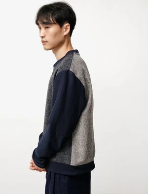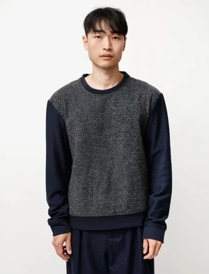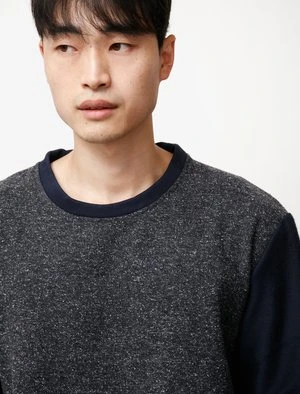 A relaxed fitting sweatshirt in a variety of cotton knits and weaves from Frank Leder. Features a colour-blocked front and back body in 2 tones of coarsely woven, nepped cotton twill. The sleeves are constructed in a heavyweight cotton jersey, with the arm utilizing the reverse face of the fabric for a subtle, textured contrast.