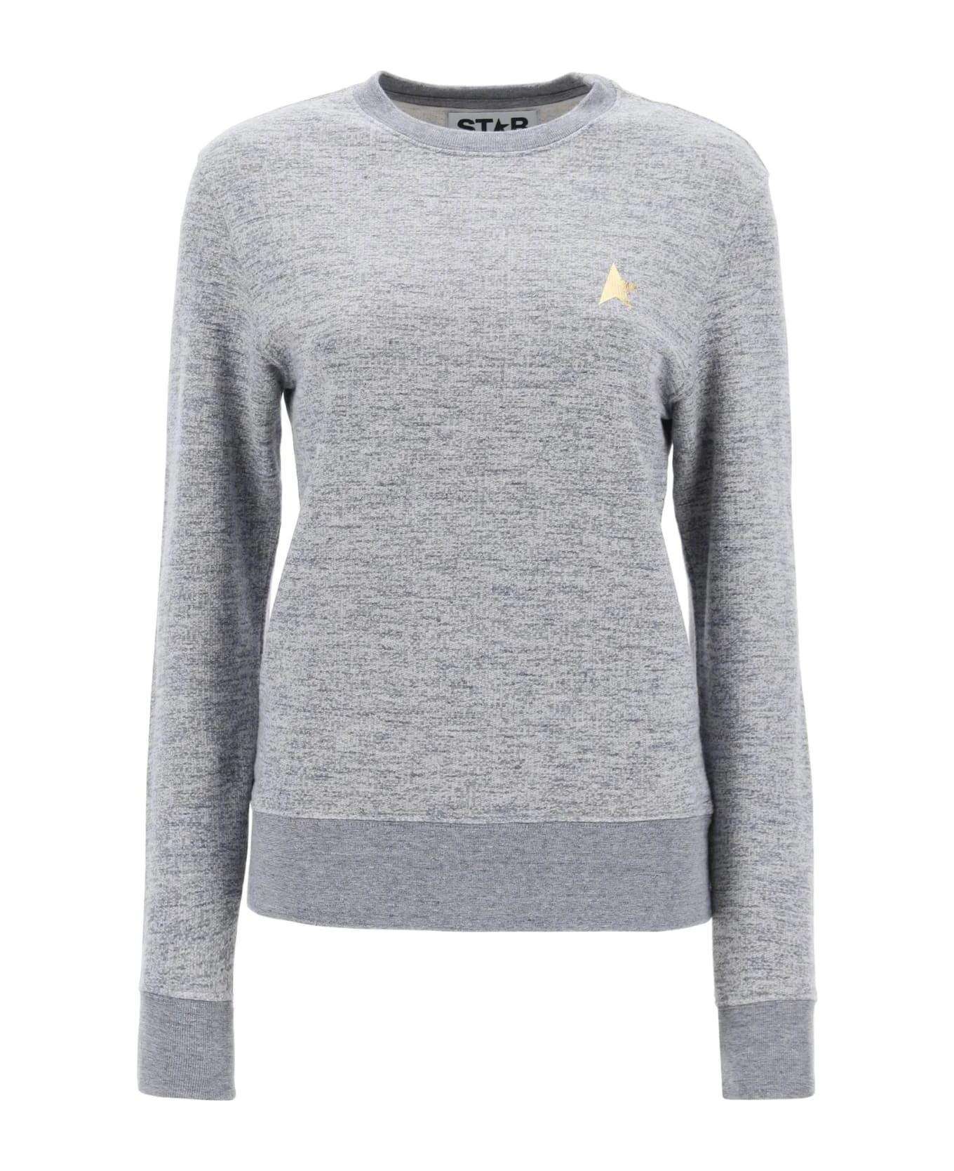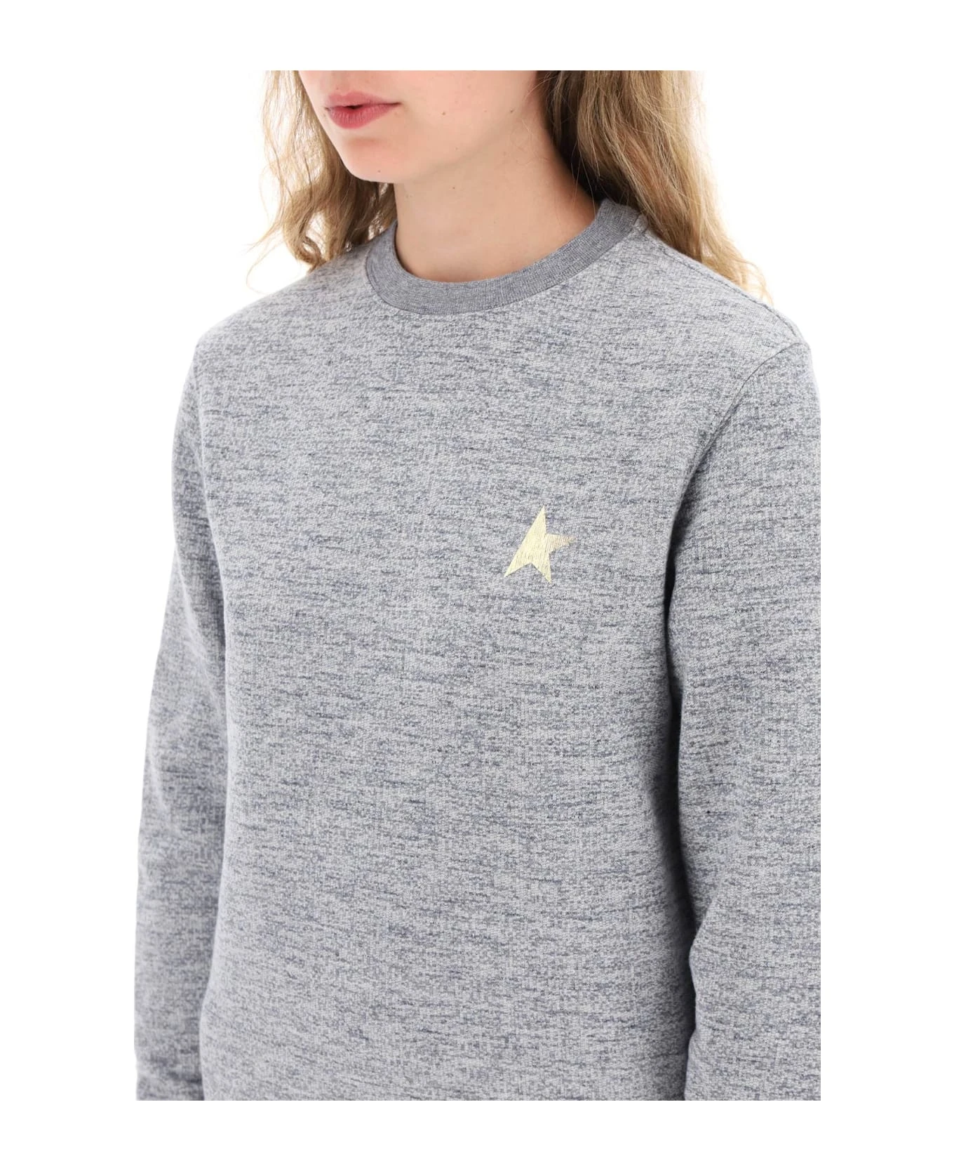 Golden Goose crew-neck sweatshirt with a gold foil printed “star” logo on the chest. Made of loop-back melange cotton jersey, it is finished with ribbed stretch trims. Regular fit. The model is 177 cm tall and wears a size XS.