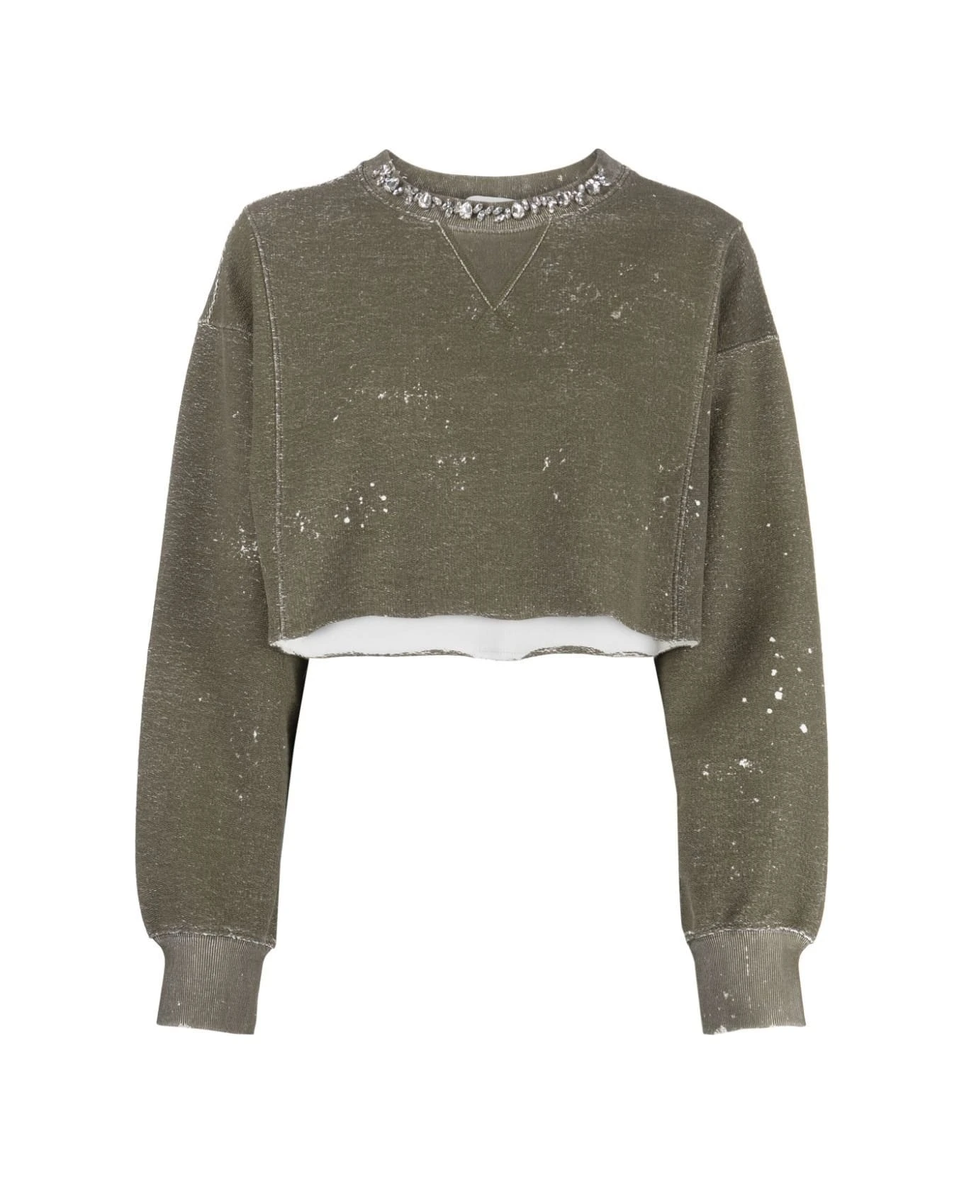 Brown printed cropped crewneck with jewellery on neck from Golden Goose. – fit the true size