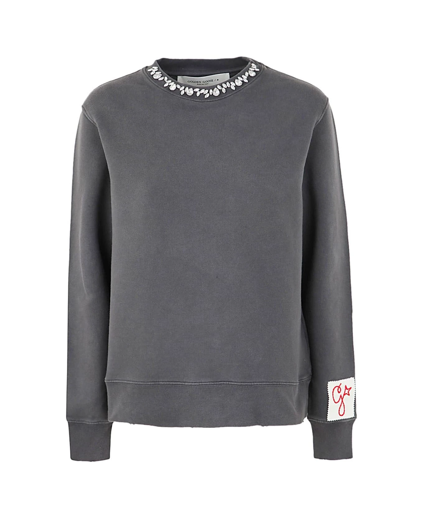 Grey round neck sweatshirt with jewellery on neck from Golden Goose. – fit the true size