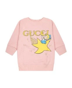 Pink sweatshirt in brushed cotton, with long sleeves, crew neck, ribbed cuffs and hem, closure with automatic buttons on the back. It is embellished with an iconic logo, multicolor print and stars, on the front, with print on the back. It’s a Gucci Kids x The Jetsons© collaboration.