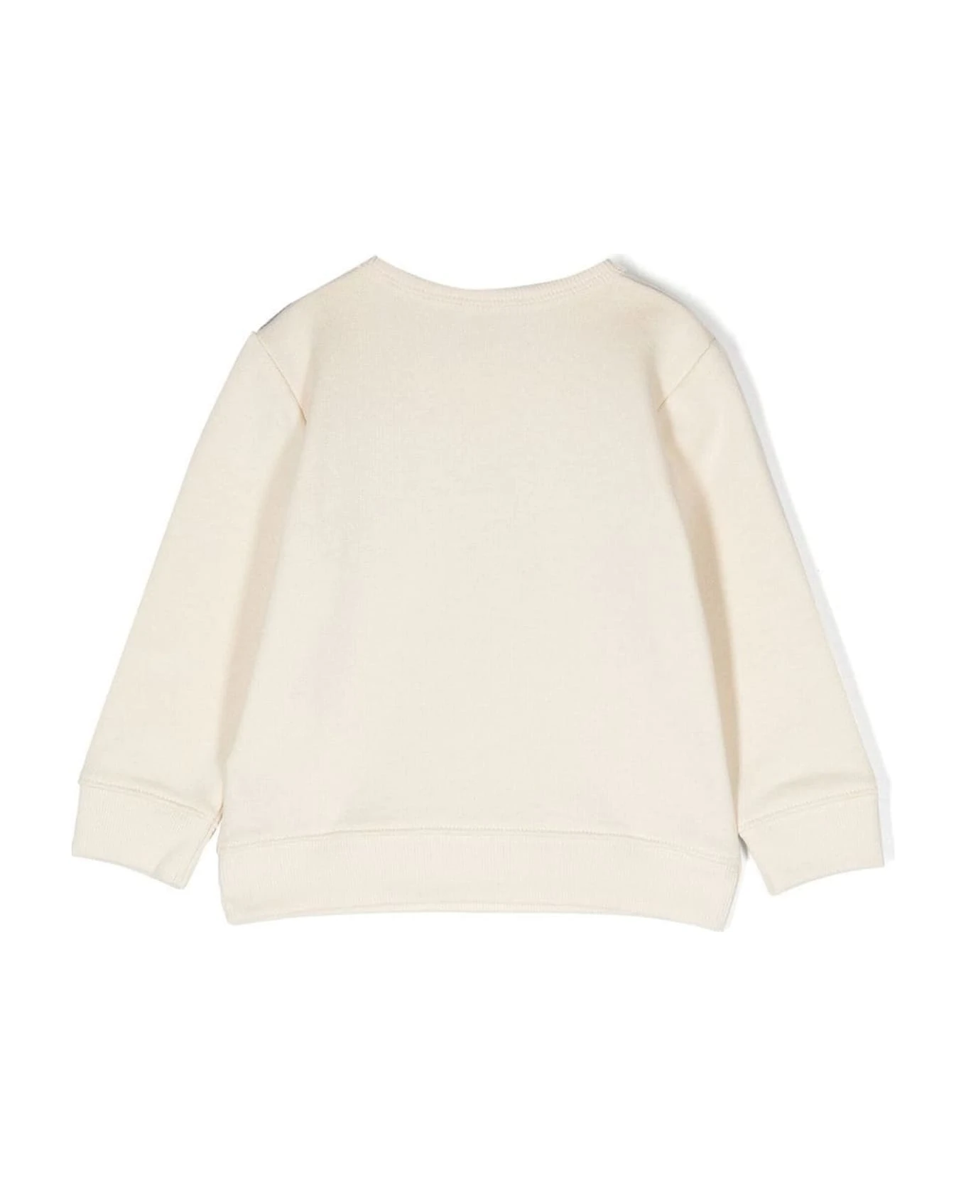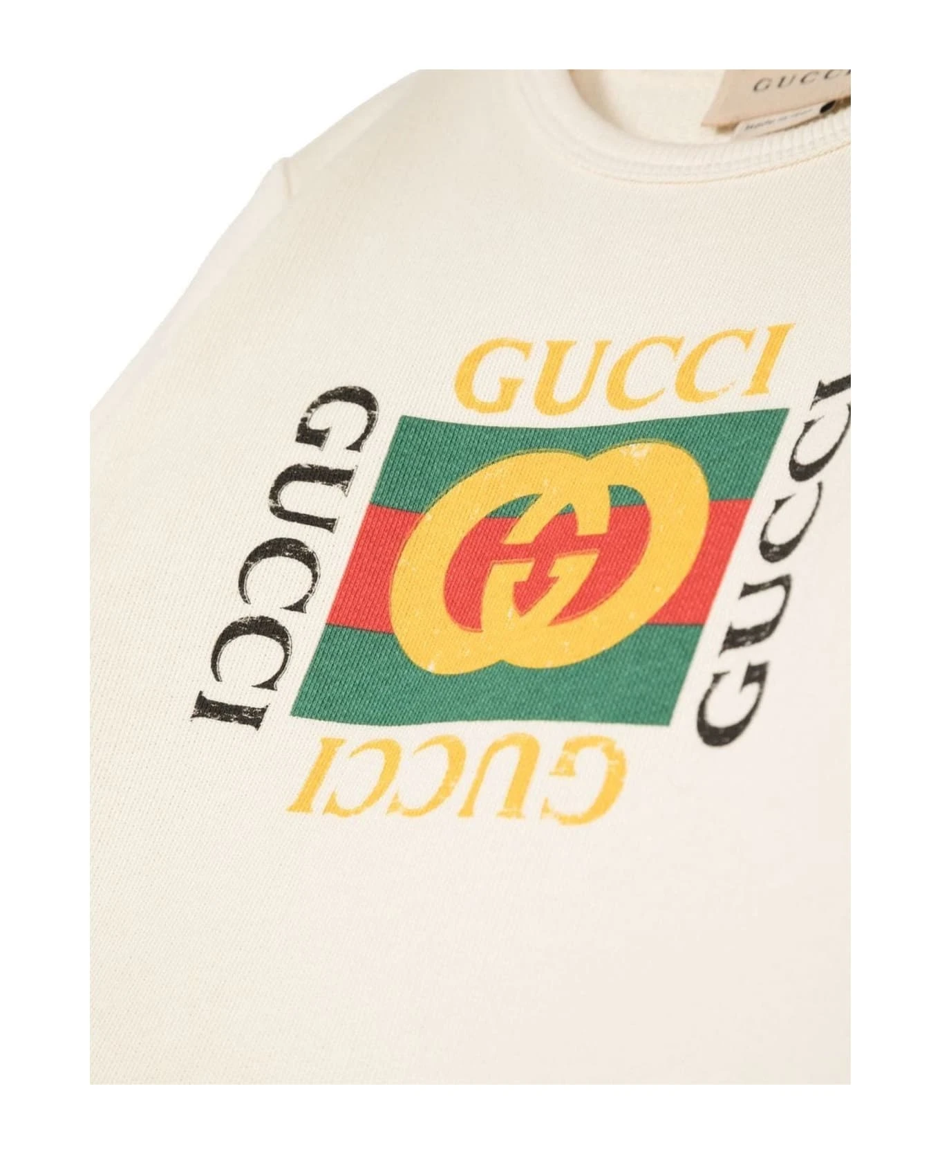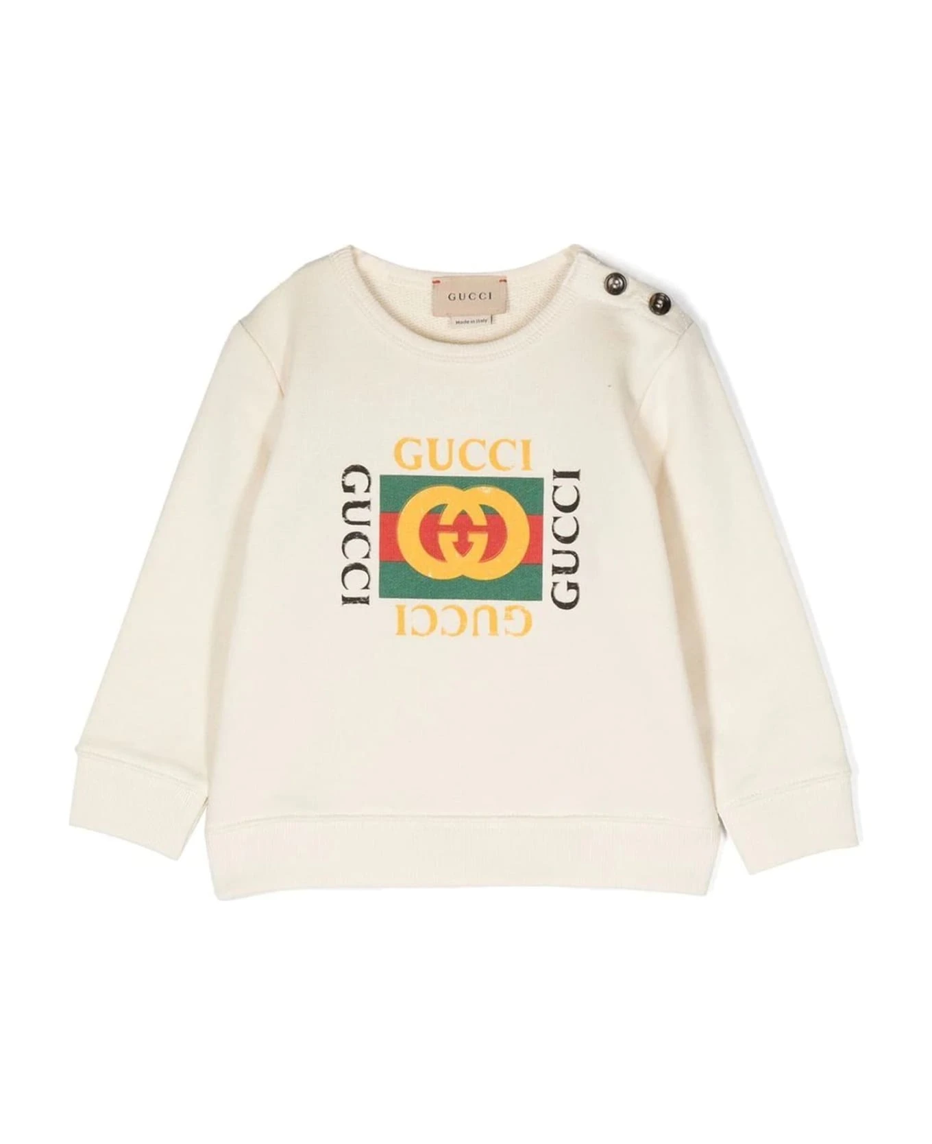 White Felted Cotton Jersey Sweatshirt With Gucci Vintage Logo, Horn Buttons, Crewneck, Hidden Snap Buttons Along The Shoulder Seam