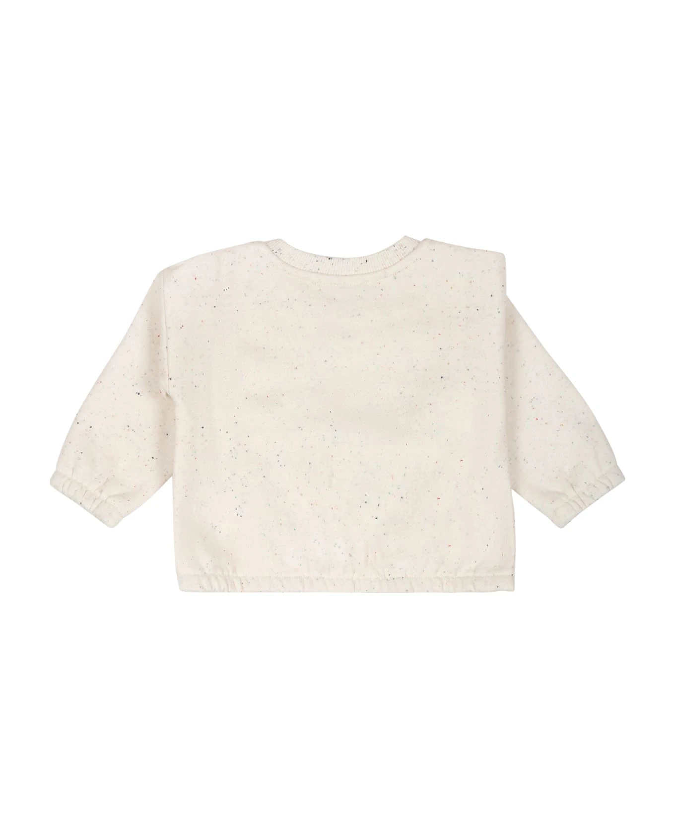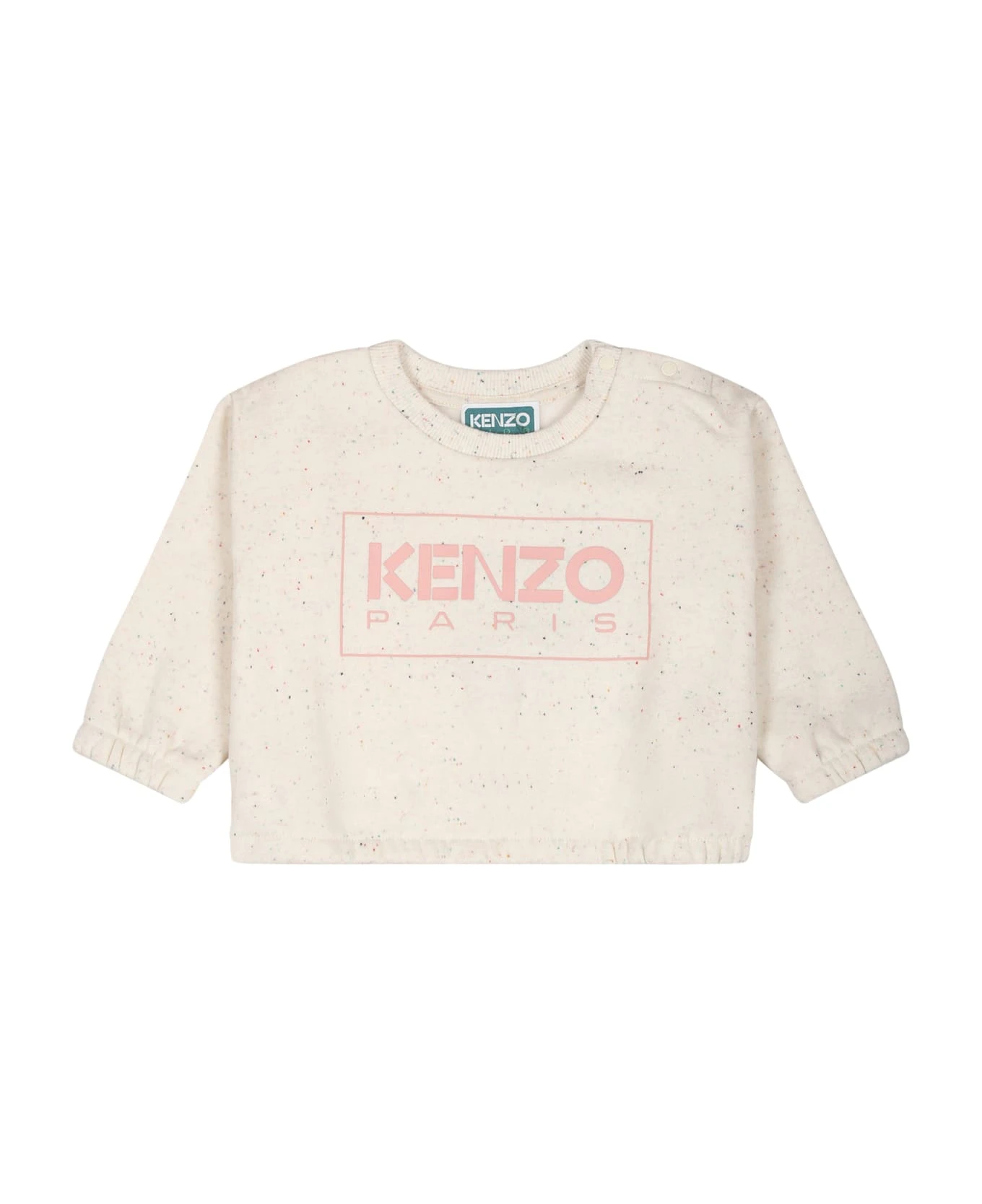 Ivory sweatshirt in cotton fleece, with long sleeves, ribbed crew neck, cuffs and hem. It is embellished with pink logo on the front.
