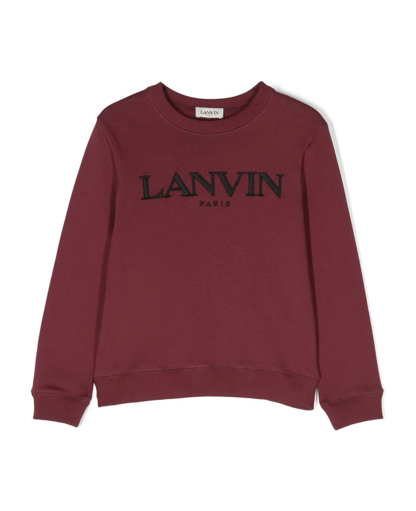 Bordeaux red cotton sweatshirt, jersey knit, embroidered logo to the front, crew neck, long sleeves, ribbed cuffs and hem