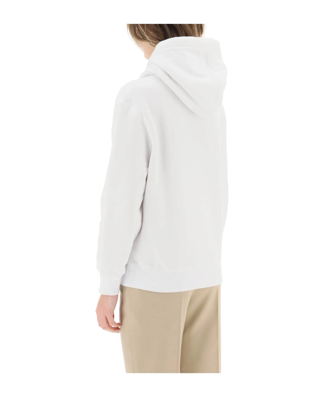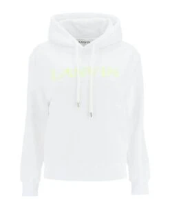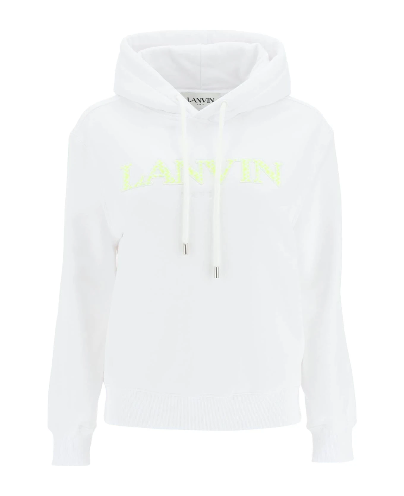 Lanvin pure brushed-back cotton sweatshirt, enhanced by embroidered Curb logo on the chest. The hood is adjustable, hem and cuffs are ribbed. Loose fit. The model is 177 cm tall and wears a size XS.