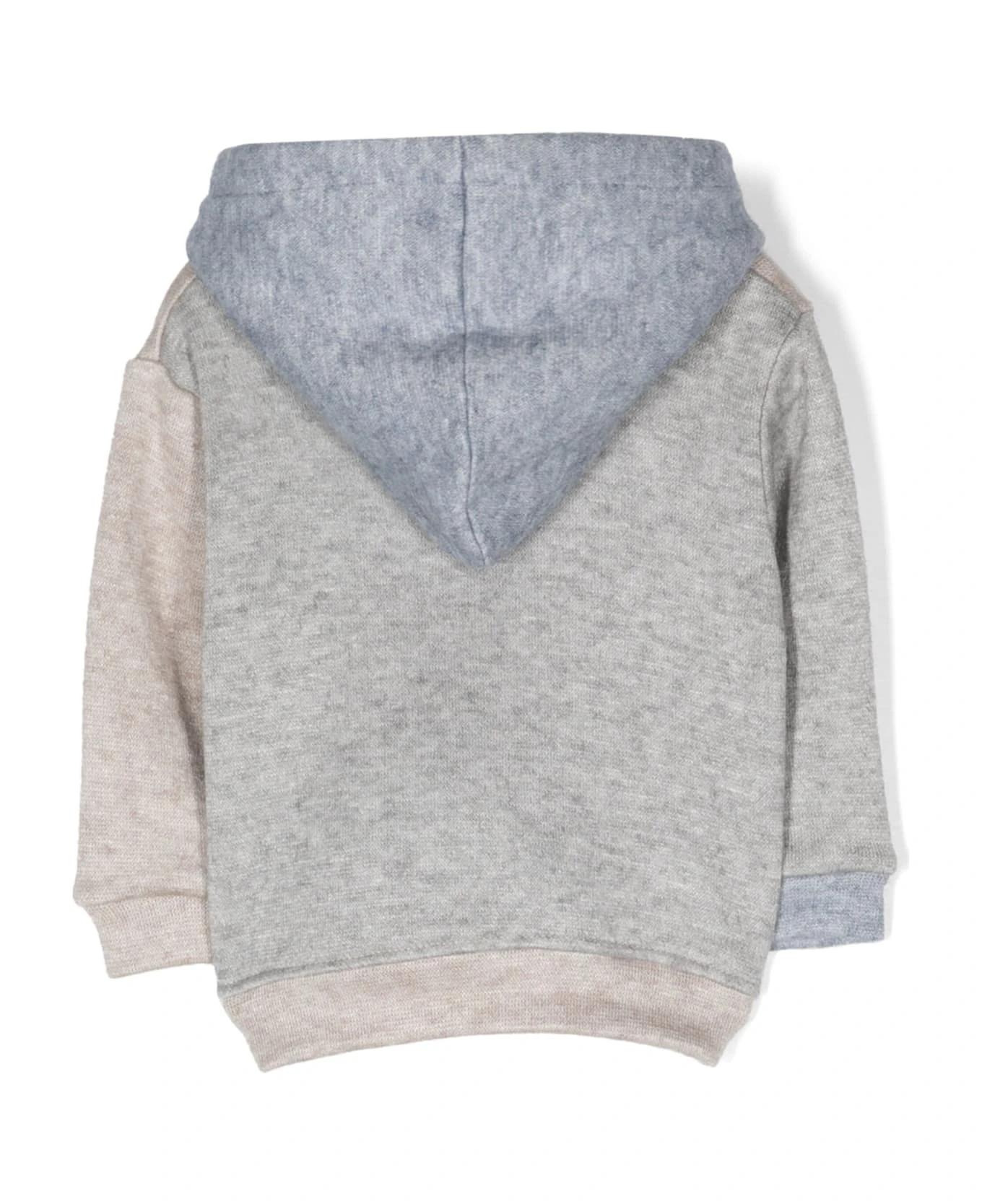 Light beige, light blue, light grey, knitted design, color-block design, mélange effect, embroidered logo on the chest, drawstring hood, front zip closure, long sleeves, two side patch pockets and straight hem. Composition