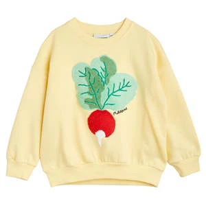 – Chenille embroidered radish on the front