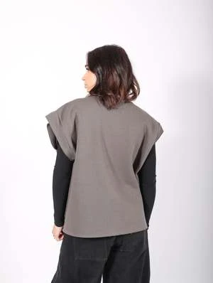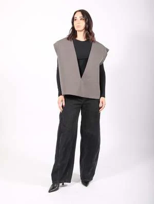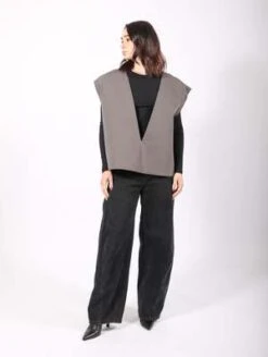 The MM6 Maison Margiela Deep V Sleeveless Sweatshirt is an ideal layering piece for fall and winter. Crafted from a gray neoprene-like jersey material, it features a deep v-neck and flattering capped muscle sleeve. The boxy oversized fit is comfortable yet elevated, perfect for everyday wear and styling.