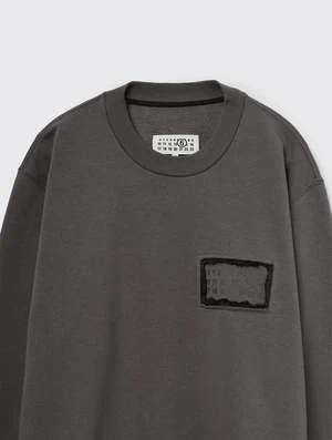 A basic jersey short-sleeve shirt marked by an intentionally faded copy machine print and the signature numeric on the front. MM6s signature stitching on the back of the garment.