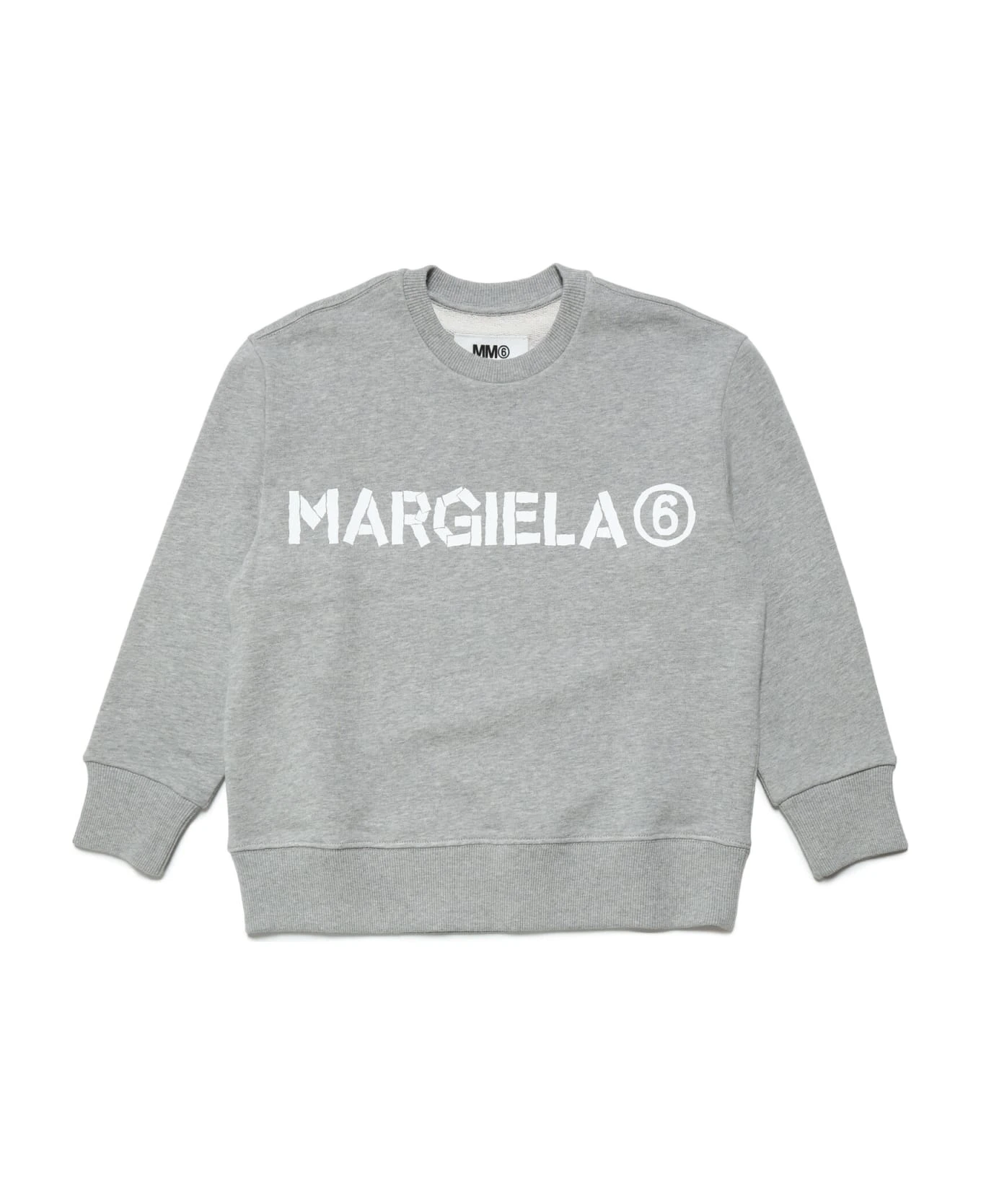 crew-neck, long-sleeved, cotton m nge sweatshirt with ribbed collar, hem and cuffs. Features a contrasting broken effect logo on the front and distinctive stitching on the back. A casual item perfect for everyday outfits and less formal occasions. Featuring an oversize fit, all MM6 garments are unisex. Each child is free to wear what they want and how they want.