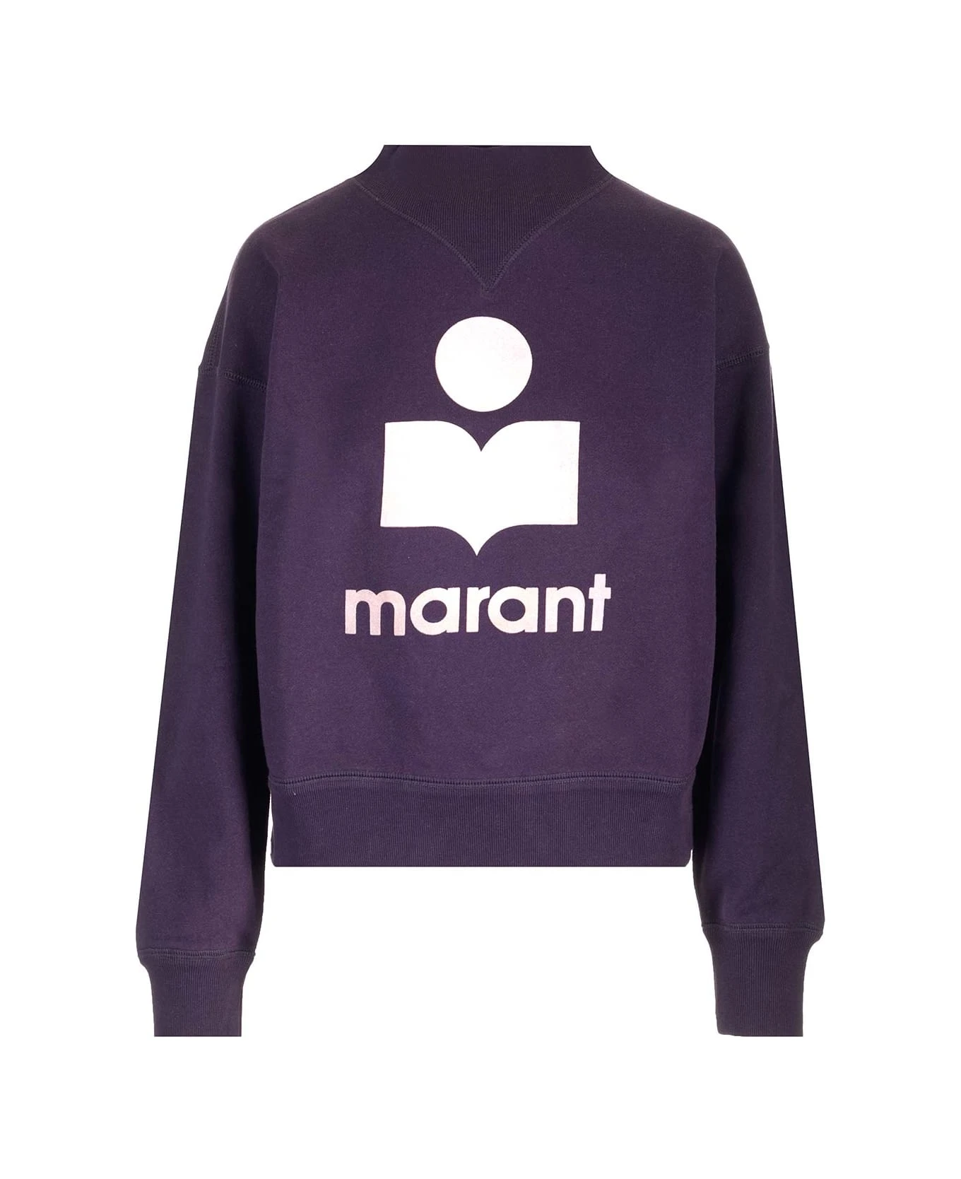 ‘Moby’ cropped sweatshirt in purple cotton, with printed logo and stand up collar from Marant Etoile.