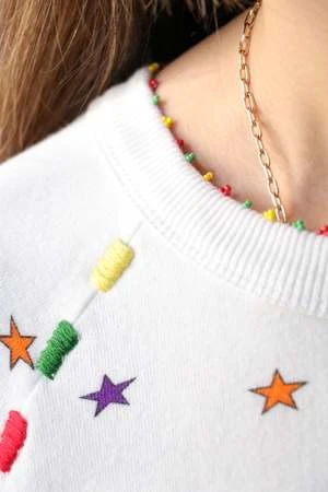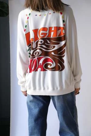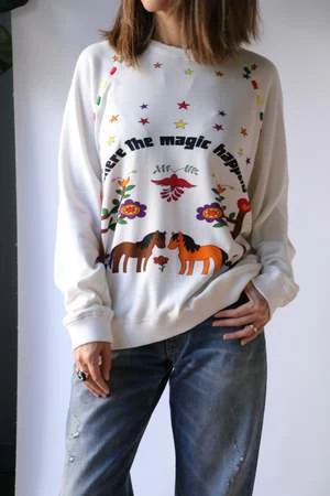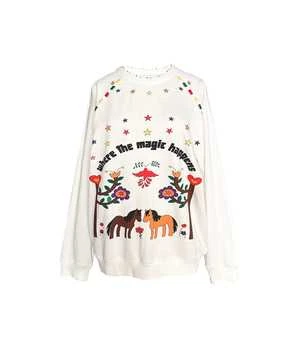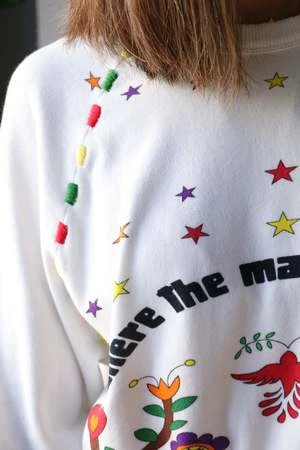 A classic off-white crewneck sweatshirt, featuring printed designs and beading detail. Step into the mystic world of Monoki.
