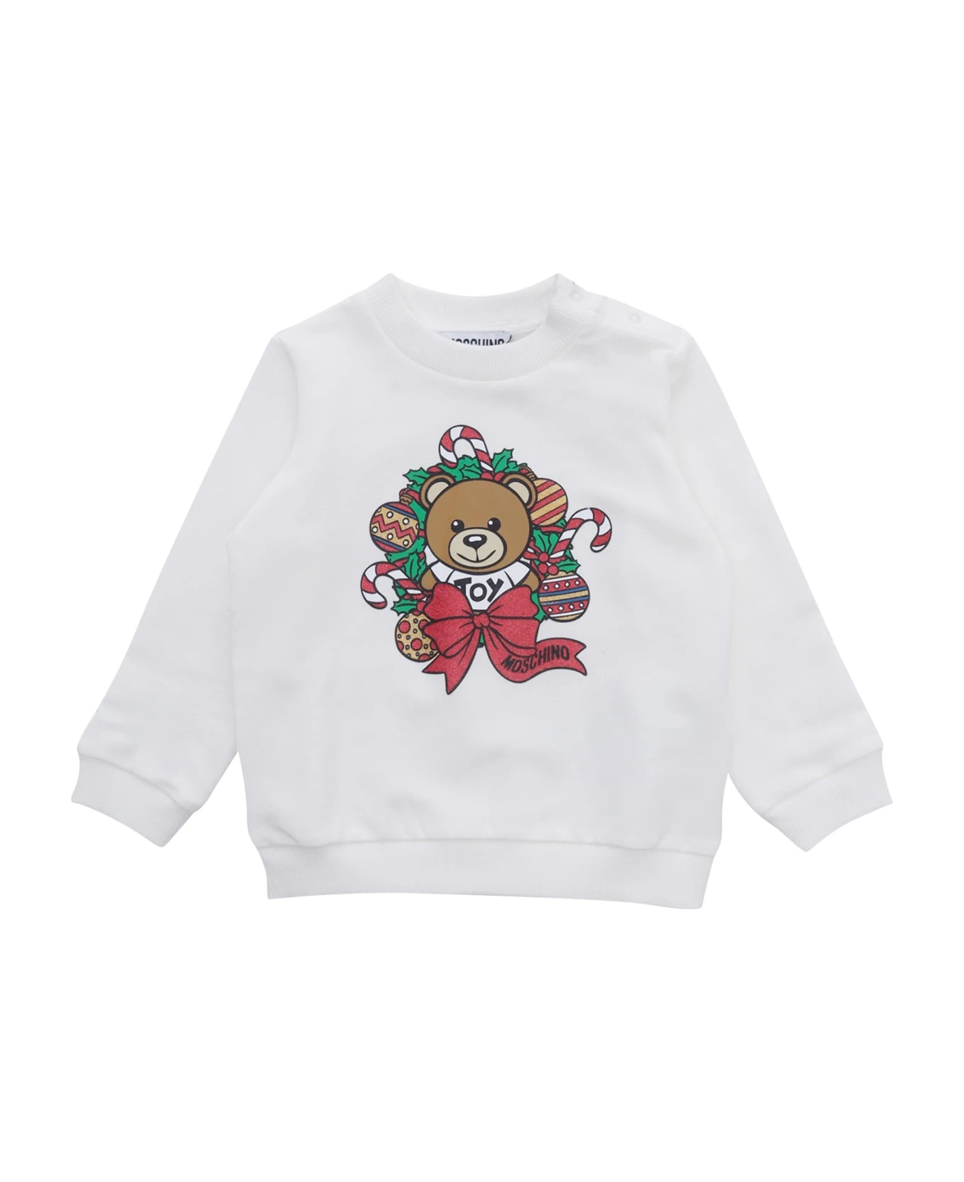 Stretch cotton sweatshirt, ribbed edges, press stud fastening on the shoulder, Teddy print