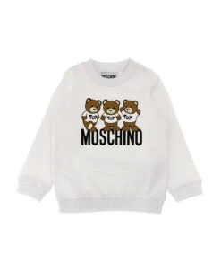 Teddy’ cotton sweatshirt with front print, crewneck, long cuffed sleeves.