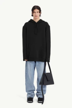 Ivory sweatshirt in cotton fleece with long sleeves, with ribbed crew neck, cuffs and hem, closure with press studs on the shoulder. It is embellished with black logo on the front.