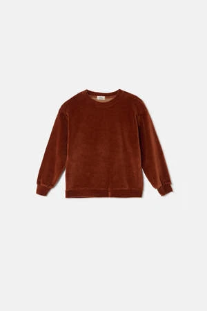 Velour sweatshirt with crew neck and long sleeves. Extra soft and warm.