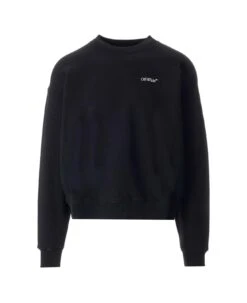 Black ‘Lunar Arrow’ sweatshirt from Off-White in cotton, white Arrow logo printed on the back, white mini logo printed on one side of the chest, long sleeves, crew neck.