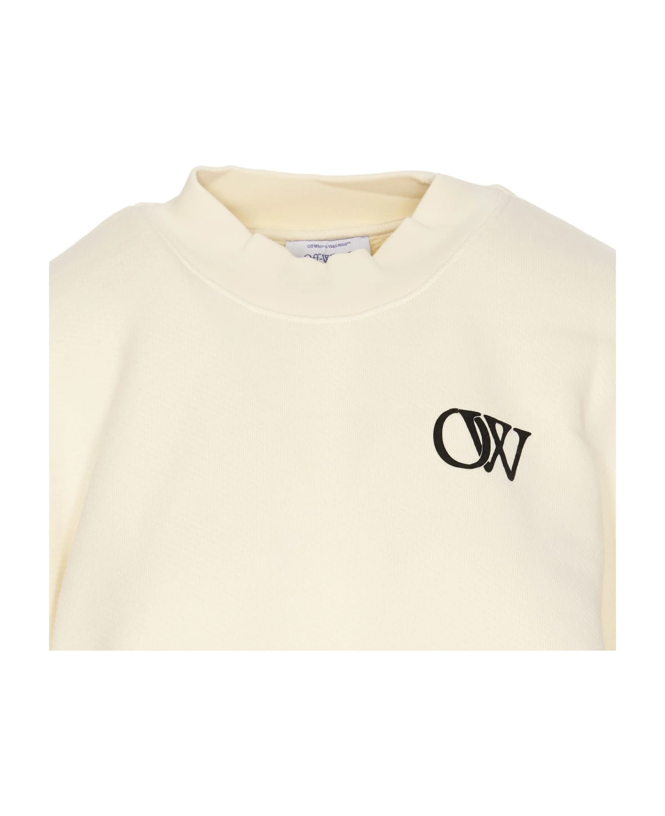 Off-White beige sweatshirt, round neck, frontal OW logo, oversize model