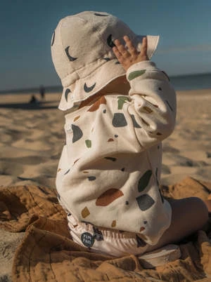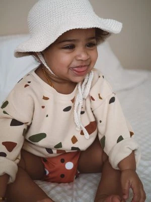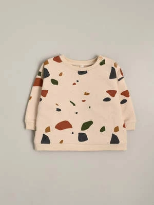 Organic Zoo Terrazzo Sweatshirt. This super soft 100% organic cotton sweatshirt in a neutral pebble hue with our signature Terrazzo print is a wardrobe essential. Looks great with a matching pair of Terrazzo leggings or mix and match.