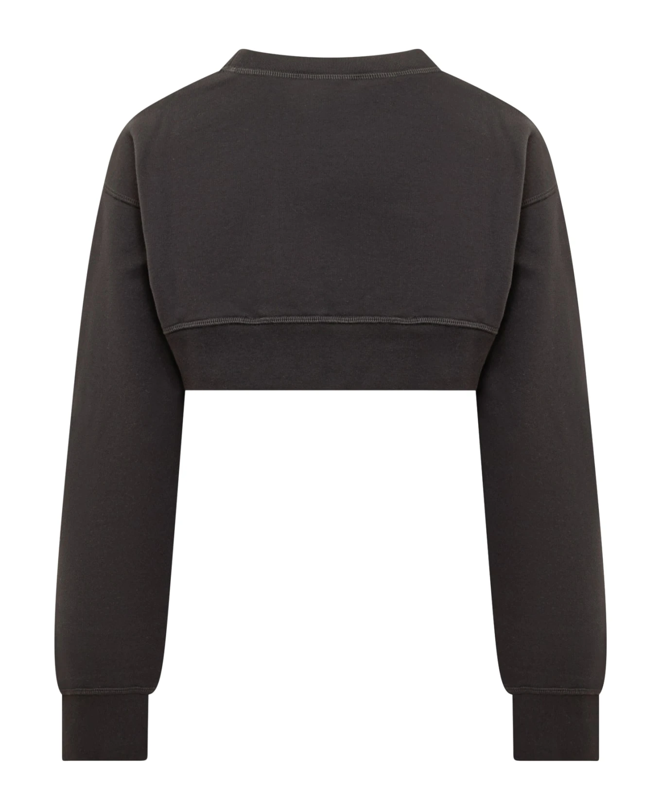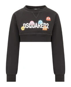 Long sleeved sweatshirt. Cropped. Crew neck. Ribbed collar, hem and cuffs. Pac-Man x Dsquared2 logo printed on the front.