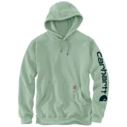 Carhartt Sweatshirts: Men’s K288 GA0 Jade Heather Midweight Hooded Logo Sweatshirt