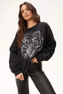 The Tiger Oversized Sweatshirt adds a new spin to a fan-favorite graphic of ours. Take a relaxed-fit sweatshirt in a rich, true black color and add a grayscale tiger graphic, and you have a top that is somewhere between a style staple and a statement piece. No matter how you choose to wear it, you really can’t lose with this one.