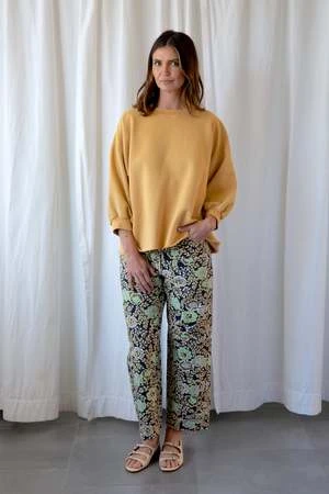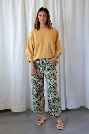 Crewneck sweatshirt in corn with cropped sleeves and a raw edge hemline. Vintage inspired silhouette with unique distressing throughout.
