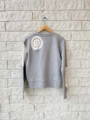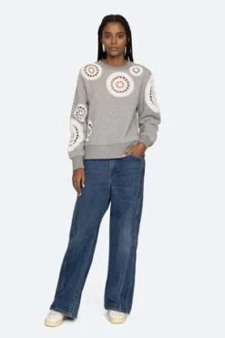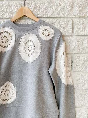 The Sea Ny Joy Crochet L / SLV Sweatshirt in Gray is a crewneck piece that showcases crochet accents along the torso and arms. A versatile design, this sweatshirt can be dressed up or down for any occasion.