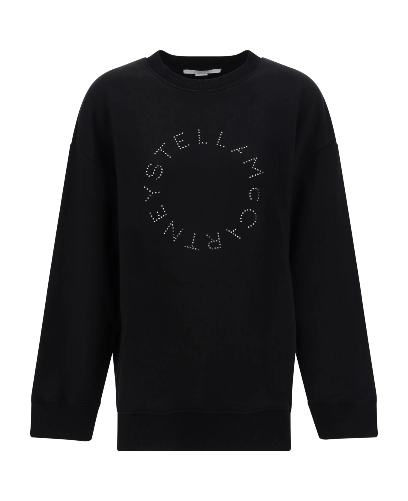 Cotton rhinestone sweatshirt by stella mccartney, ribbed crew neck, ribbed cuffs, the brand’s iconic monogram in shiny beads applied to the front, a ribbed hem, and an oversized fit.