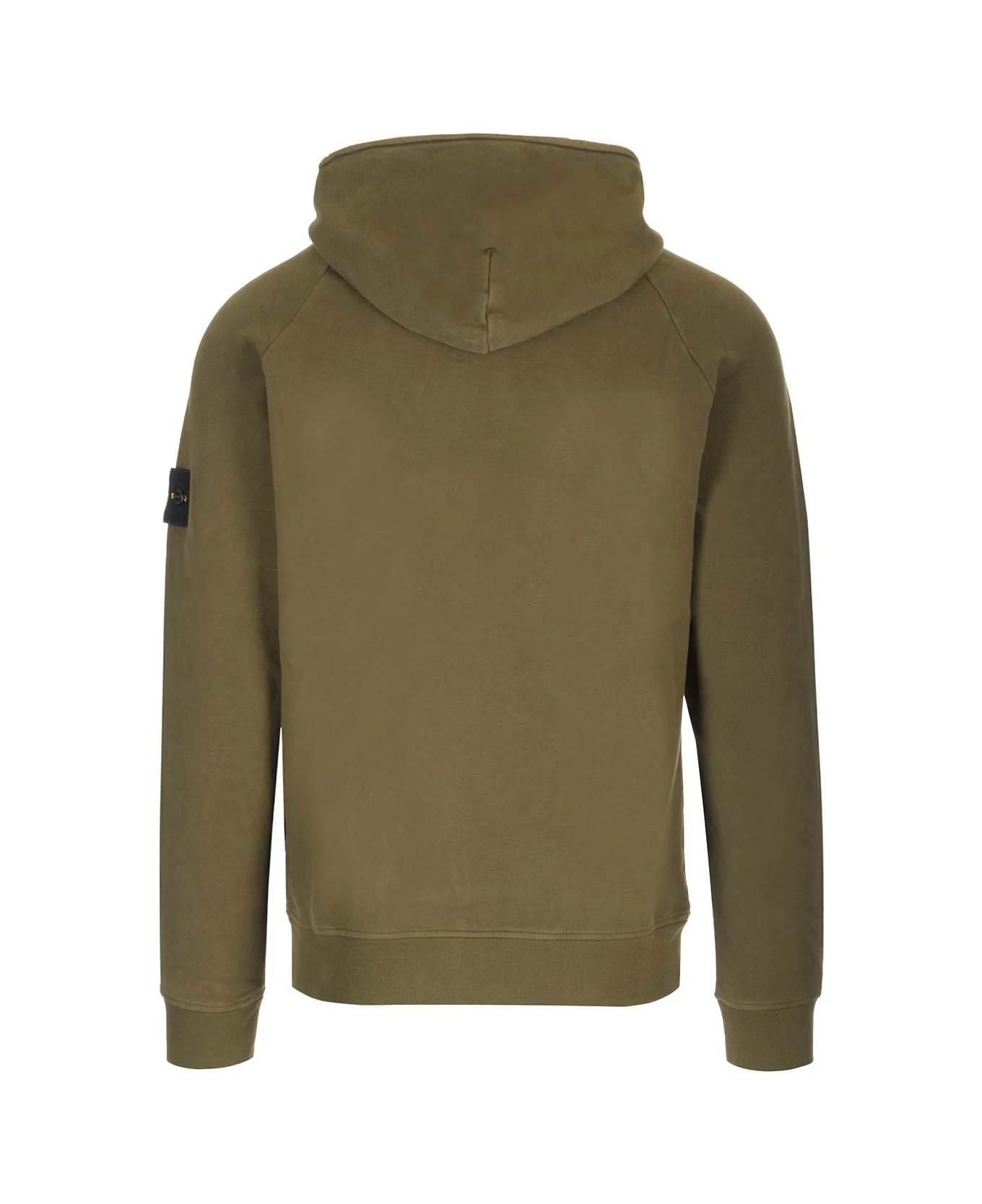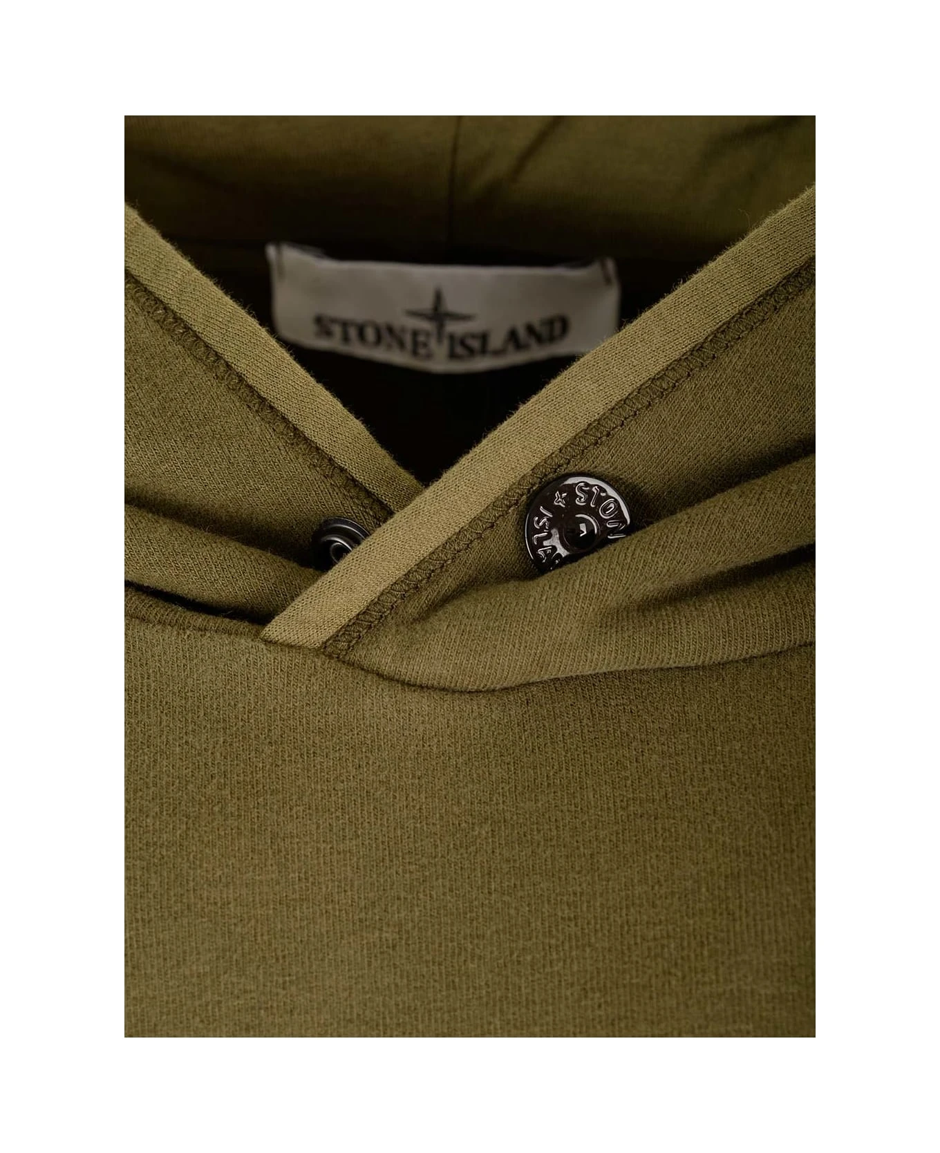 Green Cotton Sweatshirt From Stone Island With Hood With Snap Button Closure And Fabric Logo Patch