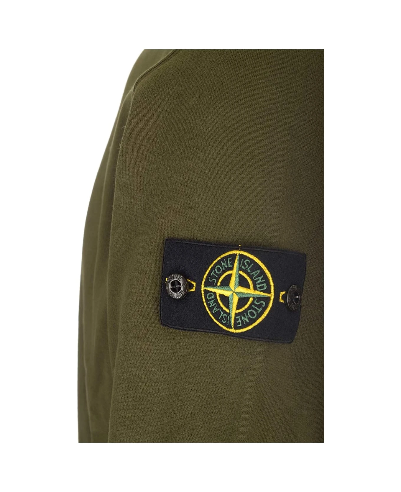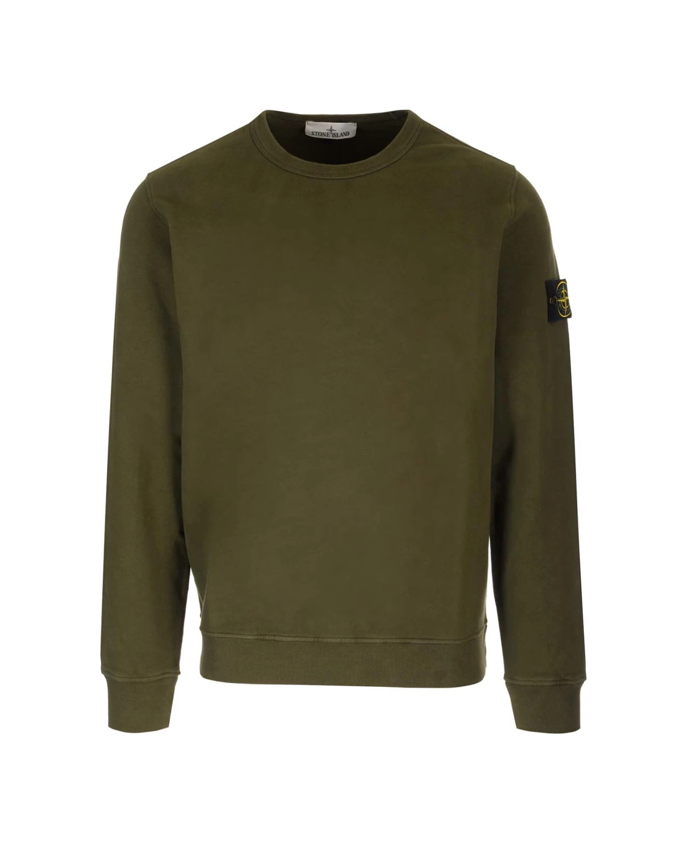 Green sweatshirt from Stone Island in cotton, logo patch applied on one sleeve, crew neck, ribbed edges.
