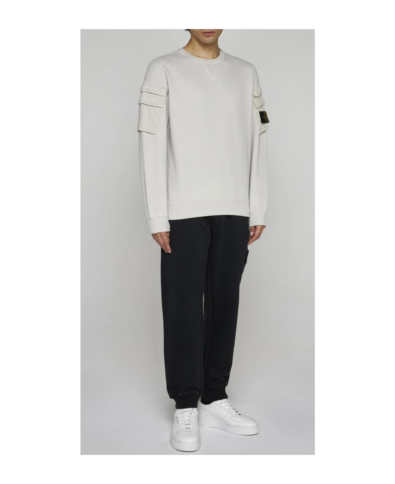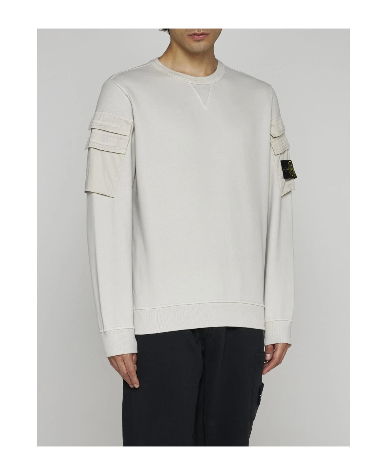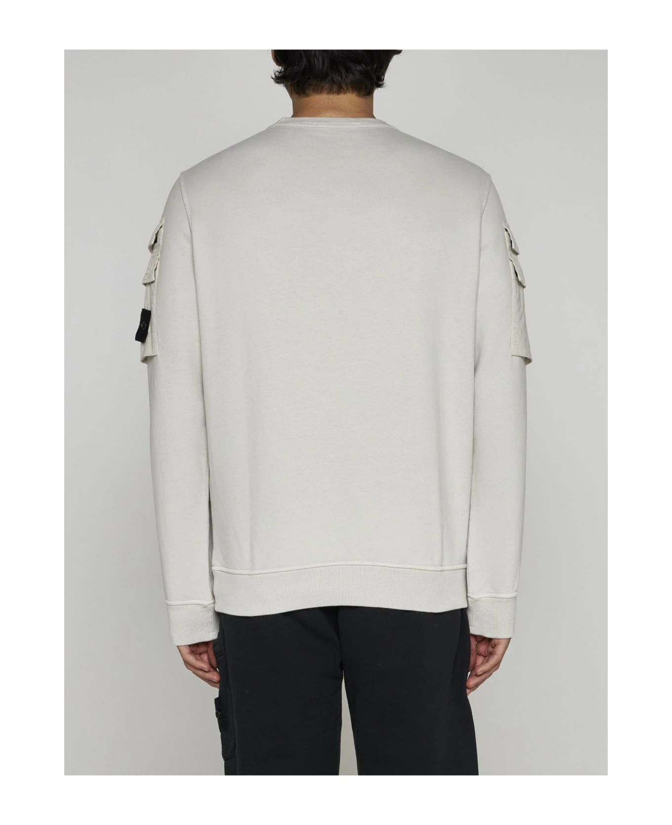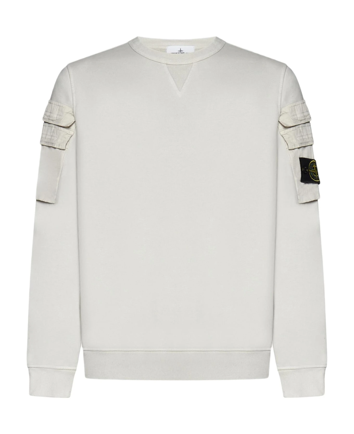 Stone Island’s light beige cotton sweatshirt featuring a crew neck, flap pockets with logo-label on the sleeves and ribbed edges.