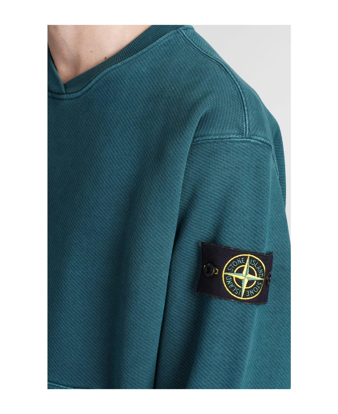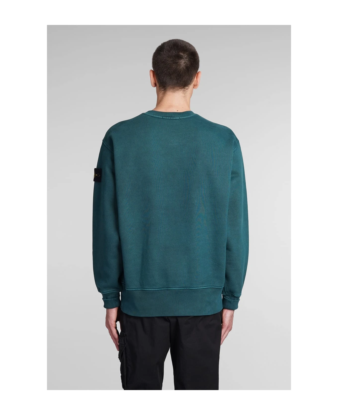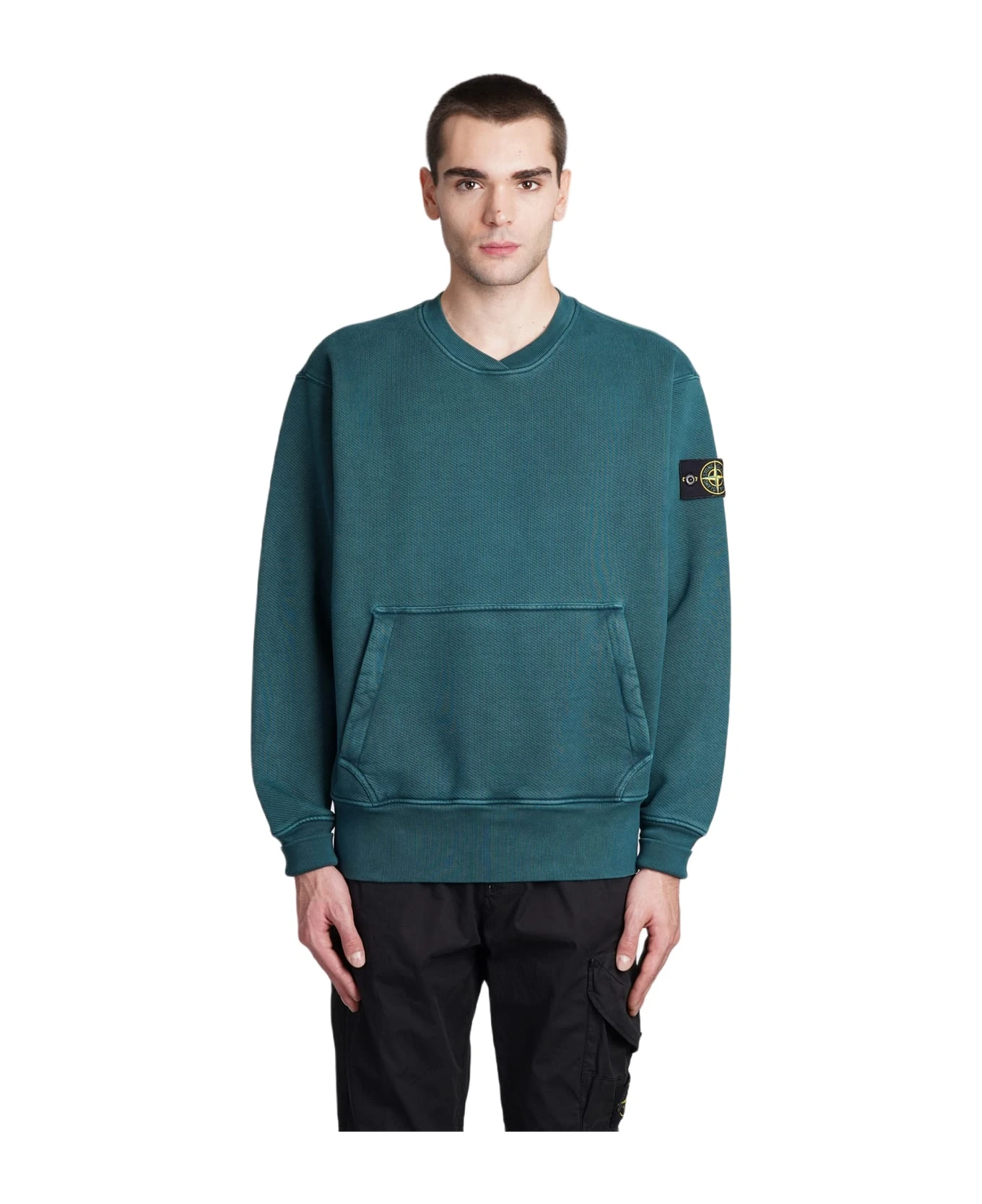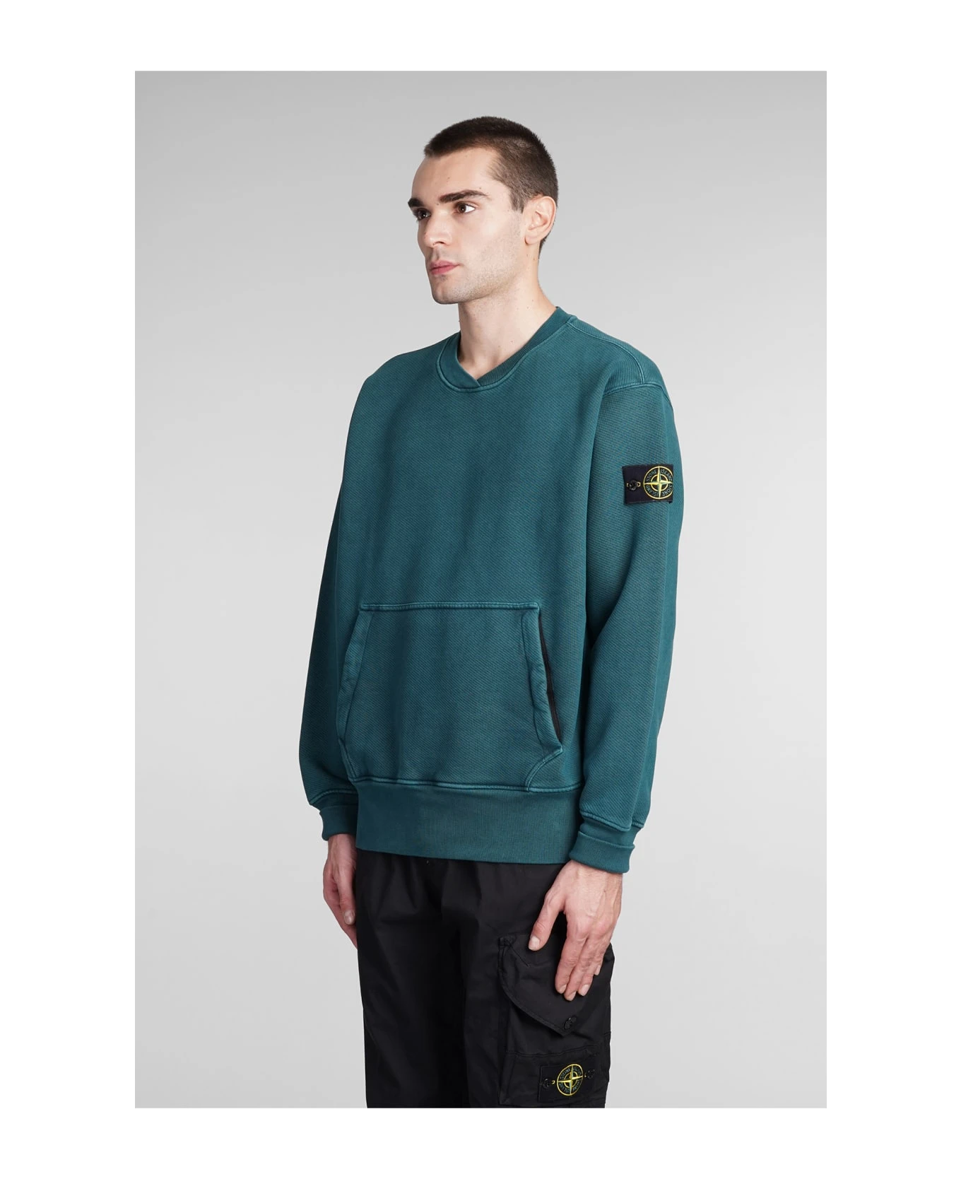 Sweatshirt in green cotton, V neck, kangaroo pockets, patch logo sleeves, long sleeves, ribbed cuffs and bottom, 100% cotton, Made in Turkey, Model is 1. 83 and wears size M