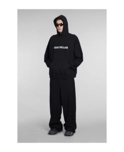 Alexander McQueen Black Hooded Sweatshirt With Contrasting Orchid Logo Print In Cotton Man
